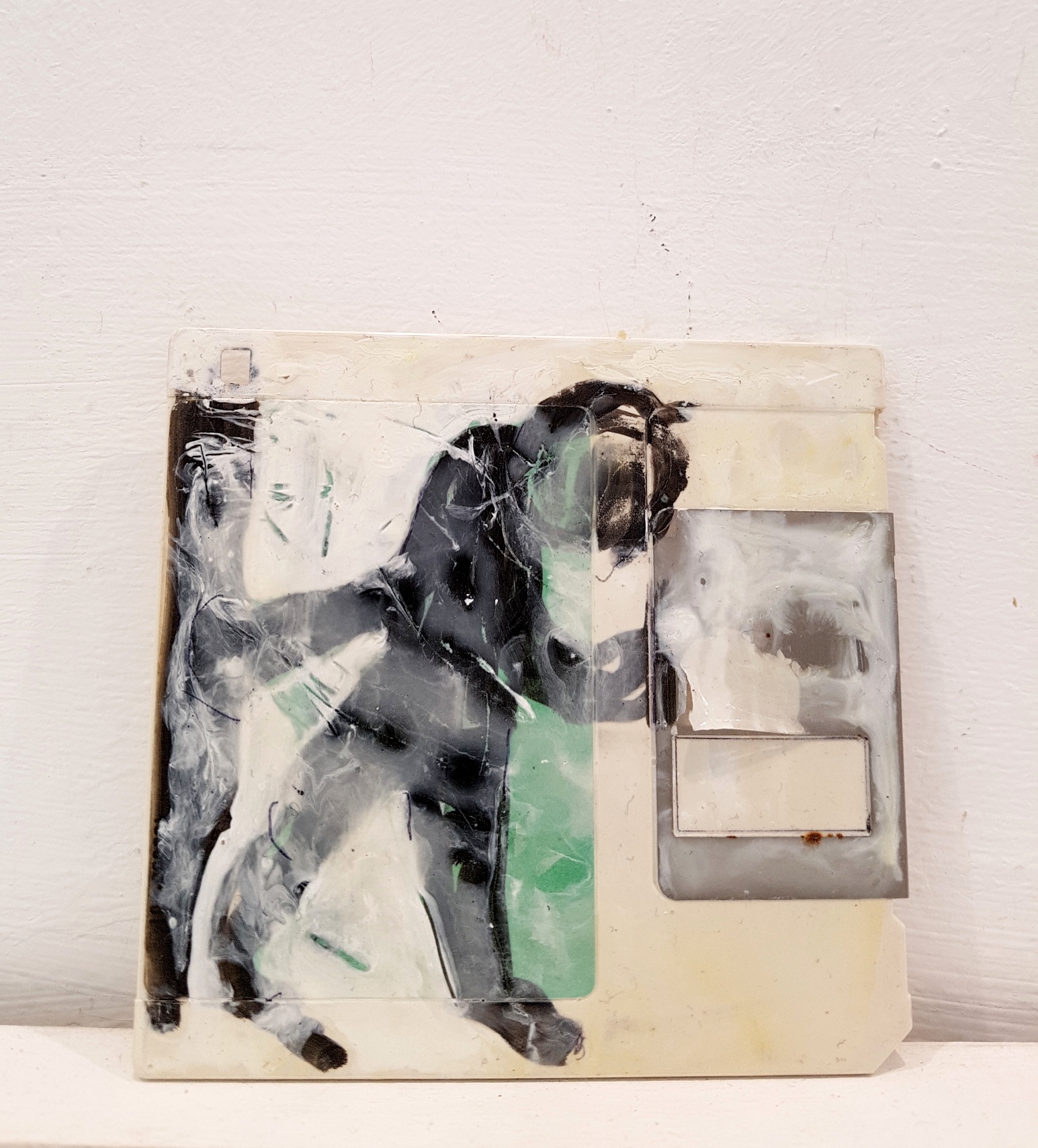 עולם ההתרחשויות הקטנות, מצויר על גבי דיסקטים, אלו שלפני כשני עשורים היו הדרך השגורה להעברת מידע ושמירתו מהמחשב והעברתו למחשבים אחרים. הדיסקט, שעשוי היה מחומר פלסטי המצופה בשכבה של חומר הניתן למגנוט בדומה לסרט מגנטי עגול ושטוח, היווה בתחילת שנות ה-90, אמצעי שגור לאחסון ושמירת נתונים וגיבוי קבצים של מחשב. עם ההתפתחות הטכנולוגית המואצת – הפכו דיסקטים אלו ללא רלוונטיים, היכולת של היום לדחוס אינפורמציה על גבי פורמטים אחרים דחקה אותם מזמן והם הפכו לחפץ שאין בו צורך. גברעם, משתמשת בחומר זה כמצע שיש בו מן הסתם “חיים אחרים”, אינפורמציה מוצפנת חסרת תועלת ולא ידועה לנו ומציירת על פני השטח סיטואציות בהן היא מקדדת את מחשבותיה, על הכאן ועכשיו.
