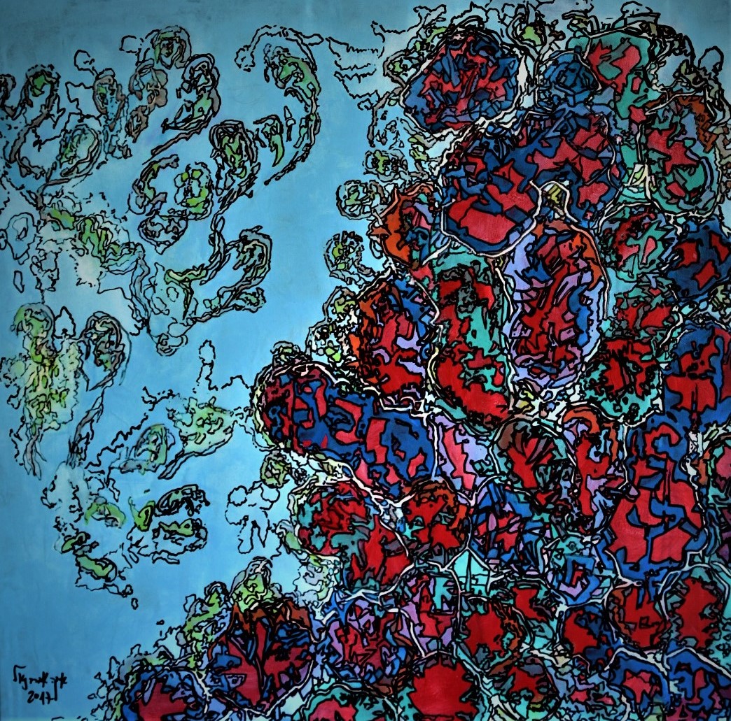 אוסף ציוריי אקרילק וטכניקה מעורבת על בד.