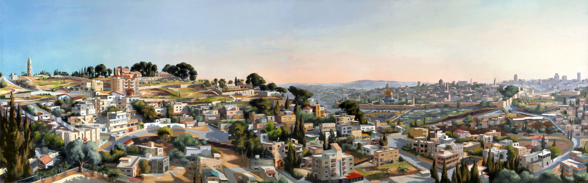 בתערוכה זו מציעה ניר נוף לא קדוש במובן הרחב של הביטוי. הנוף המוכר, הביתי, כמו גם הנוף האייקוני של ירושלים של זהב, אינם מועלים לדרגת קדושה ואינם הופכים “עבודת אלילים” כפי שמציע מיטשל בהתייחסו לאמנות הייצוג של הנוף. אם הנוף הירושלמי הוא אייקוני או קדוש יהיה זה במובן האסתטי בלבד. סדרת ציורי ירושלים, ממנה מוצגות רק כמה דוגמאות בתערוכה זו, מבטאת ניסיון להעניק קדושה ציורית, פסטורלית כמעט, לעיר המוזהבת, מבלי לקשור אותה בעבותות ההיסטוריה. מה שנדמה כציור ריאליסטי במבט ראשון, מסתבר כמלאכה עמלנית המשלבת מבניות קומפוזיציונית מחד, ודיוק בעיצוב הפרטים, מאידך. ניר מעצבת את המרחב באופן הרמוני, מתבססת על תכנון מתמטי בהשראת אמני הרנסנס. בניגוד לקומפוזיציות המשורטטות מראש על גבי הבד, עבודת הצבע אינטואיטיבית ובלתי מתוכננת. המגוון האדיר של הצבעים המפוזר בצורה מאוזנת על הבד, מונח בכתמים קטנים, מעניק ליצירה אווירה רנסנסית, שהופכת אותו ליפה יותר. עבודת הצבע נעה בין כתמים גדולים, שטוחים או אווריריים לבין עבודת מכחול עדינה של פרטים זעירים המעניקים לציור תחושת חומריות. הצבעים חזקים, בוהקים באור השמש, לא מתנצלים.