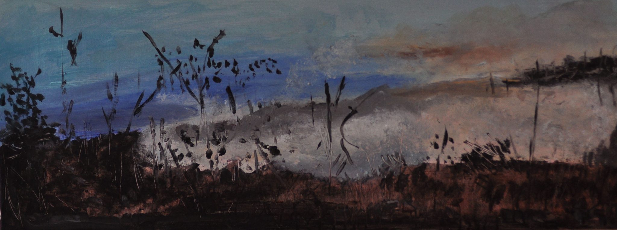 בתערוכה “הרהורים” מוצגים ציורי נוף חופשיים מדיטטיביים בפורמטים קטנים אנכיים,