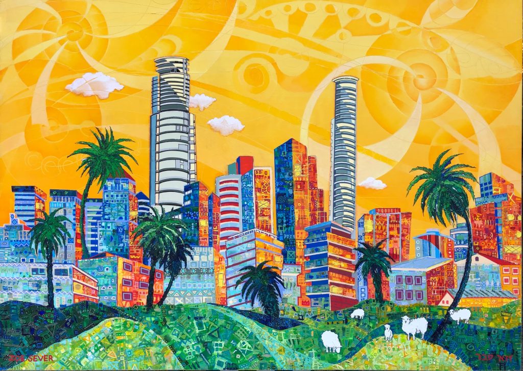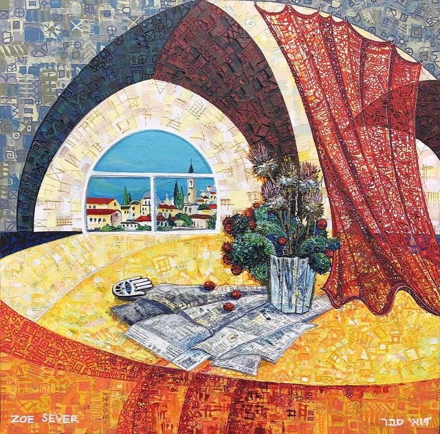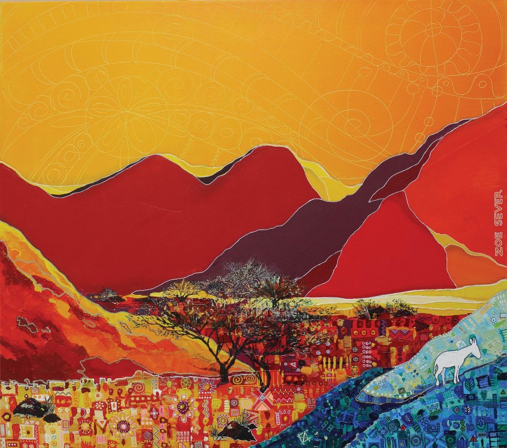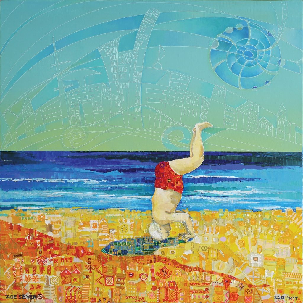 ממש כמו נופיו של האמן המיתי פול קלה, מצוירים נופיה רבי הצבע והקצב של הציירת הוירטואוזית זואי סבר – נופים המשרים אווירה טובה ומזג שמח על כל הצופה בהם. פול קלה הגדיר את אמנות הציור שלו “כלקיחת הקו לטיול”. כמוהו ממש מציירת גם זואי סבר. גם היא מטיילת עם קוויה הברורים ובונה מרקמי נוף, העשויים מפאזל עמוס סימבולים מרהיבים ביופיים, סממני פולקלור וסמלי טקסטורה חסרת גבולות המאופיינים בקשת צבעים מגוונת ומפעימה. אמנותה היא אמנות אסרטיבית ללא ספק, שמטרתה לתאר את עולמנו בחיוביות, לשקף את מראותיו האפיים והרומנטיים, להביע בצורה אימפרסיוניסטית רווית הומור וגיל חוויה של טיול וצפייה במתחם האורבאני של תל-אביב, עיר המטרופולין. ה”עיר ללא הפסקה” של זואי סבר, היא עיר המפוצצת בזיקוקי דינור צבעוניים, מתחם פסטיבלי הבנוי מבתים ציוריים ויצירות אמנות דינמיות, מקום של קצב ותנועה סיזיפית מהנה.