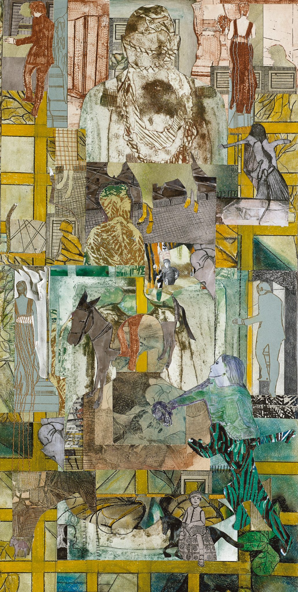 ניתן לראות במקבץ עבודות הקולאז’ גם סוג של רקמה שנעשית בעמלנות ובדייקנות מוקפדת. חיבורי הקולאז’ של דימויים זה לזה מדמה תפירת המחט שננעצת בנייר במהלך תפירת הסדקים והפצעים ומביעה את הכאב שבעשיית היצירה והבאתה לידי שלמות.