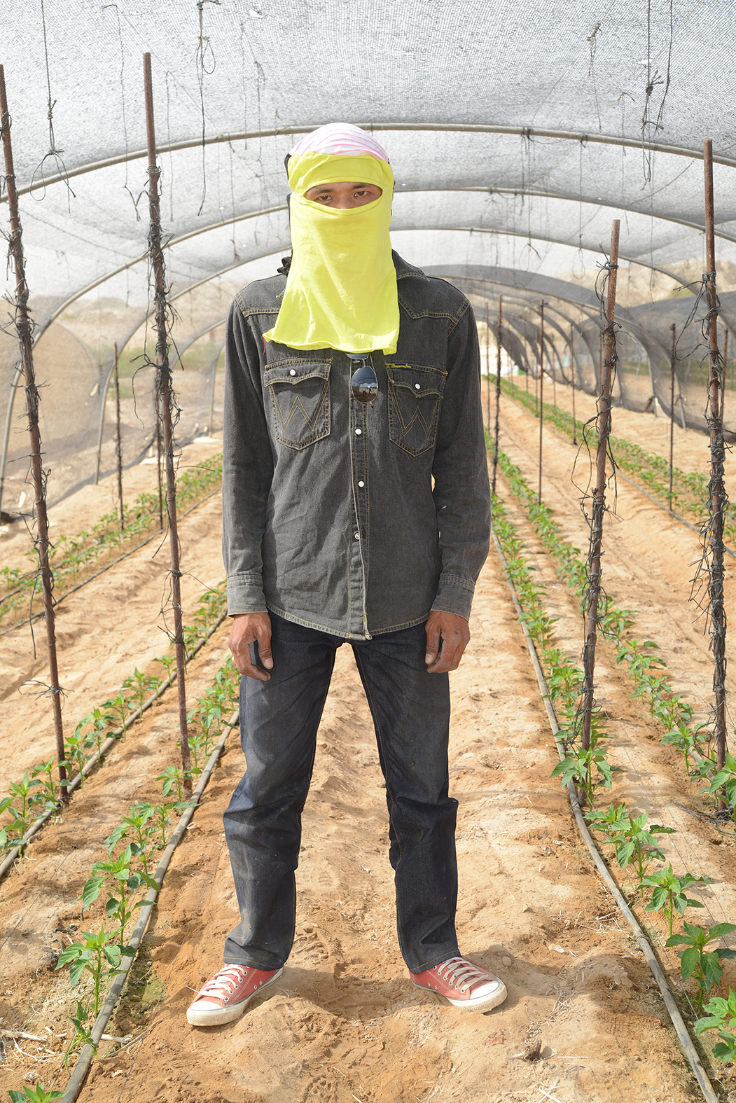 ומיד מתבקש לשאול – מה יש לדגמן במשקים החקלאיים בדרום הארץ? לא מעט, מתברר. שחם מאתרת אצלם אחדות מסוימת, מפתיעה, עם הנעשה בחזית האופנה העכשווית. אם להיות מפורשים יותר – היא מאמינה כי אפשר להצביע על קרבה מסוימת בין עובדי החממות והשדות לבין הצעירים המצודדים המאכלסים את עמודי הכרומו במגזיני האופנה. זו איננה משוואה פשוטה, ועבור הצופה היא מציבה תביעה מאתגרת לגישור שבצידה ויתור, או לכל הפחות השהייה רגעית של ההכרה במציאות עגומה למדי של תעסוקה.