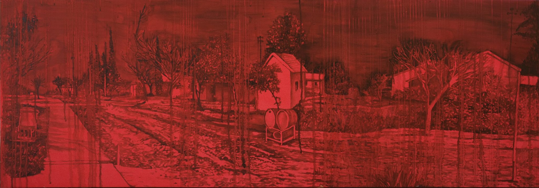 בשישי ה-18.10 תיפתח בגלריה בבארי תערוכת יחיד לזיוה ילין. ילין מציגה סדרת עבודות חדשה מהשנתיים האחרונות. עבודותיה, סדרת ציורים פנורמיים, עשויים שכבות-שכבות. על רקע אדום עז ועמוק ציירה בזפת שחורה את נופי הקיבוץ של פעם, על שביליו, צריפיו הנמוכים, חורשות עצי אורן, מבנה המזכירות וחדרי החיילים. את הנופים ציירה על בסיס צילומים שמצאה בארכיון של הקיבוץ והאלבום המשפחתי שלה. בשלב האחרון מהלה זפת קרה בטרפנטין ונתנה לה לנזול במורד הציור, מוחקת ומעוותת את הצבע שמתחתיה, מתריסה נגד הקפדנות הפיגורטיבית שמאפיינת את הציור שלה. בשתי עבודות ציירה את אביה בסוף שנות חייו הארוכות, ממנו נאלצה להיפרד. בחלל הגלריה הקימה מיצב אינטימי של חדר ההורים. ספה, ספרים על שידה, מדף קטן ומסגרת של תמונה. על כל אלו צבע כתום בהיר שפוך בנדיבות, נוזל על גבי הספרים הספה והשטיח, בולע אותם לתוך הרקע של הציור עד שהופכים לאחד. וכמו בעבודותיה על הקנבס, על הרקע של הצבע הנוזל ותכולת החדר, ציירה ציור גדול מימדים של הקיבוץ. הפעם, הצבע האדום של הרקע, הפך לחומר איתו עבדה. ילין משתמשת בחומרים נוסטלגיים, משבשת אותם, מתעמתת, מוחקת, מחברת מחדש קטעי מראות מנופי הקיבוץ לכדי מציאות בדויה.