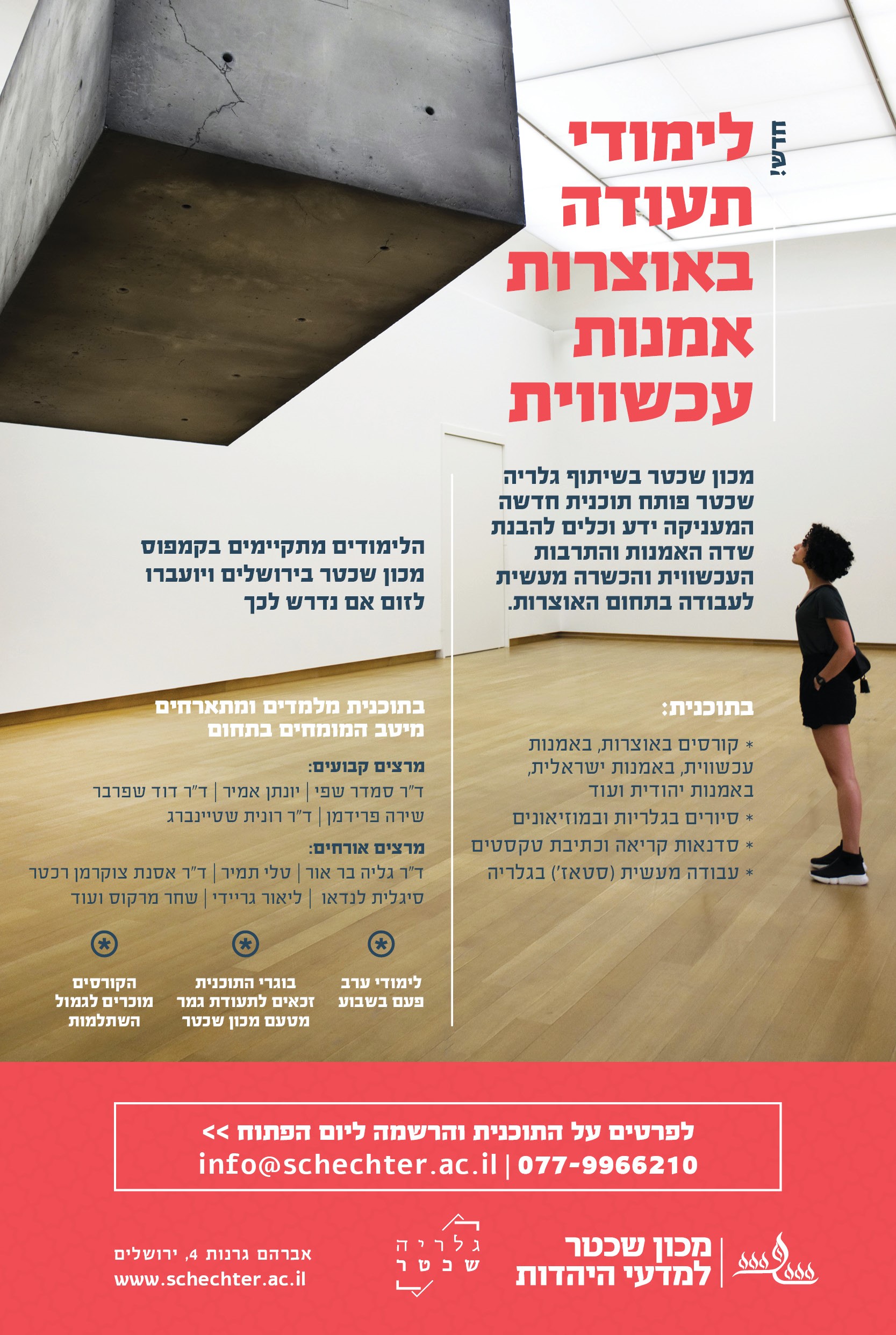 לפרטים ולהרשמה https://schechter.ac.il/diploma/modern-arts-curatorship/