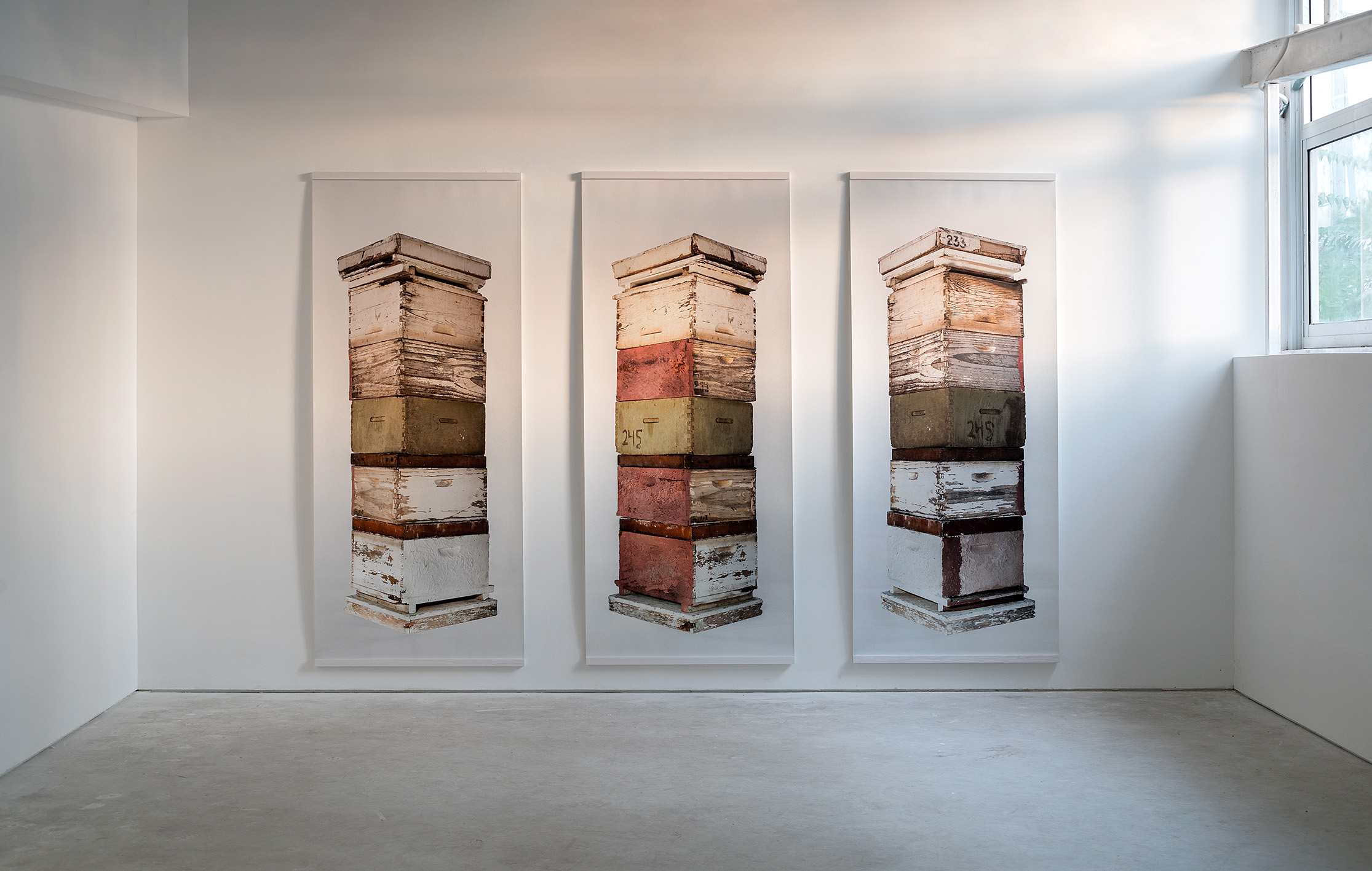 בקומה העליונה מוצגים שלושה תצלומים גדולים של אובייקטים פיסוליים שפרומצ׳נקו יצרה מכוורות דבורים שנערמו זו על זו. כאן, המבנה הפונקציונלי, שתכליתו להפוך למפעל להתרבות ולייצור דבש, הופך למבנה אדריכלי בעל איכויות מונומנטליות. הטוטם הצנוע, שגובהו כגובה אדם, מזדקר והופך לגורד שחקים יומרני. במרכז החלל העליון מוצבות יציקות אפוקסי דמויות כוורות ומכסים, דקות ושקופות. קרני האור הטבעי המאפיין את החלל מכות במעטה האפידרמיס הפולימרי הצהבהב וחושפות את הפאטינה ואת הצלקות האורגניות וההתהוות שהותירו עקבות הזמן ביציקה.