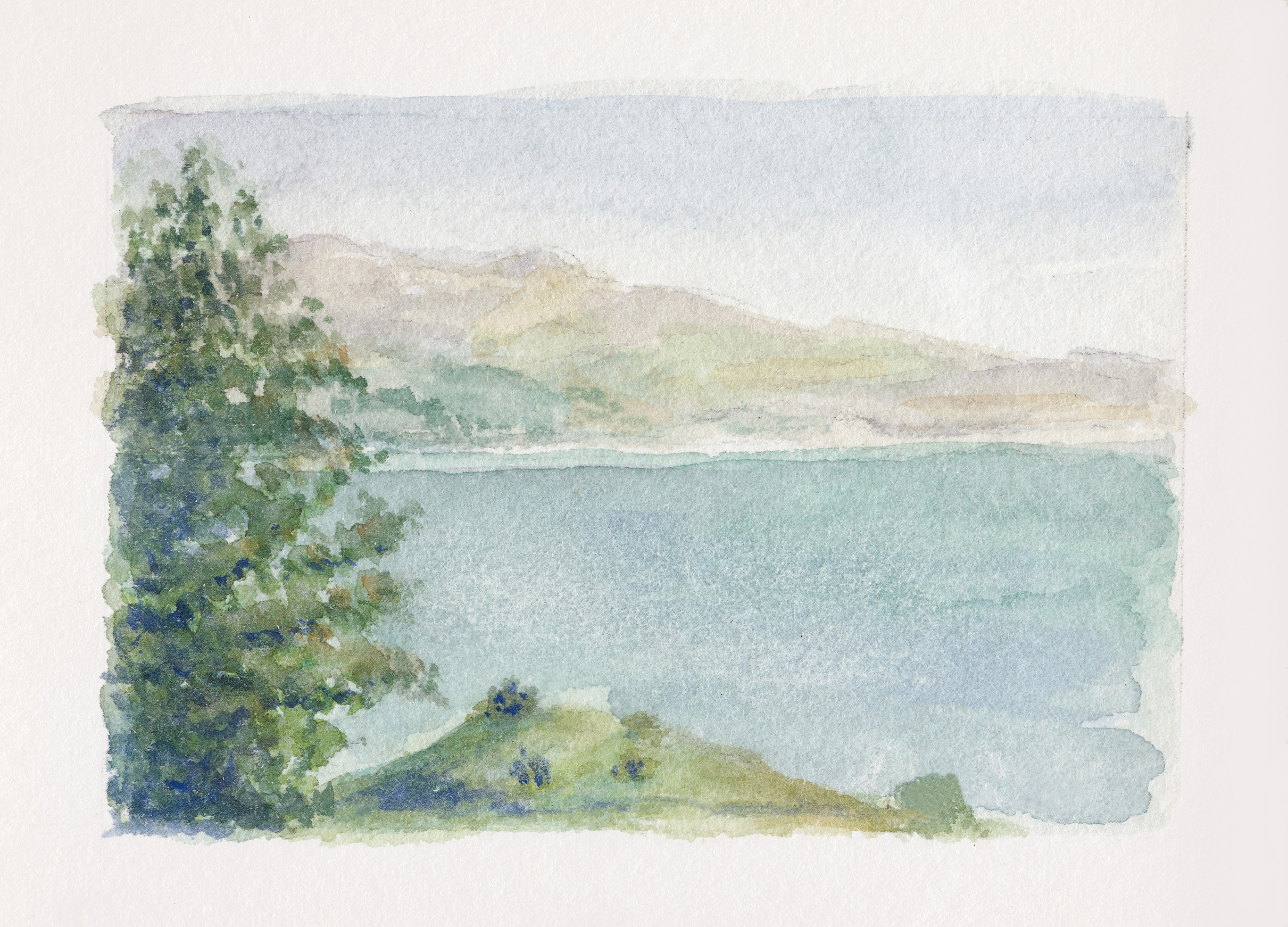 עבודות הנוף בצבעי המים נוצרו אף הן בהליך של התבוננות. הן אווריריות ומעניקות תחושת מרחב על אף מידותיהן הזעירות, בעיקר בציורים שבהם מופיעים המים והשמיים, בטונליות עדינה המתפרשת ללא סימון גבולות. במרבית העבודות האמנית מחלקת אינטואיטיבית את הנייר לקומפוזיציה לפי פרופורציות “חתך הזהב”.