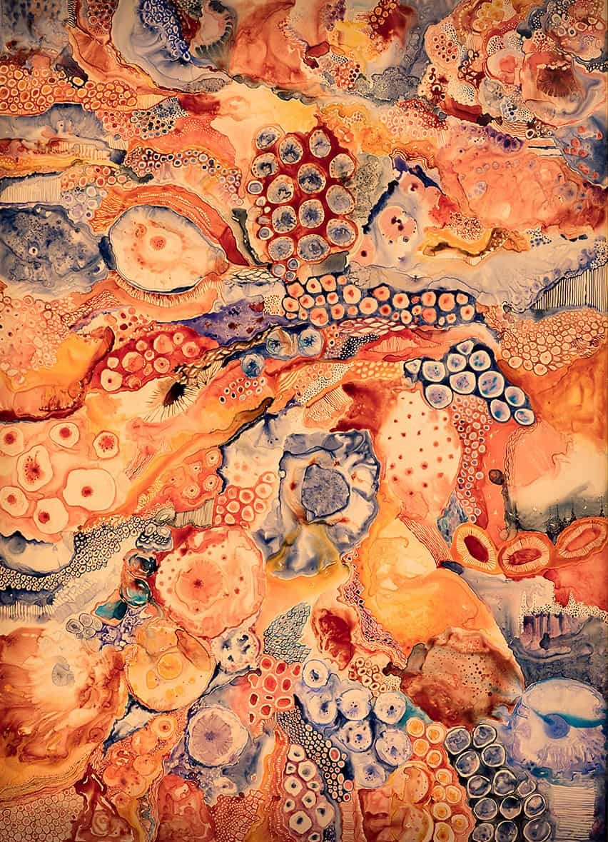 ארבע האמניות המשתתפות בתערוכה משתמשות בטכניקות ובחומרים מגוונים: נייר, קולאז’, עץ, צמחים ציור וצילום. התערוכה עוסקת בפירוק והרכבה של חומרים, אשר בהמשך מולידים יצירה מוגמרת ומפתיעה. בחלק מהעבודות האובייקט אינו מזכיר את החומר הבסיסי בו החלו האמניות לברוא את יצירתן, ועל אף הבסיס השונה נוצרת בכולן מעין מטמורפוזה חומרית ונפשית, שהיא החוט המקשר ביניהן. התוצר של כלל האובייקטים הוא אמירה על בריאה וכליה החוברים זה אל זה במגוון אופנים. אנדי ארנוביץ עוסקת בתערוכה הנוכחית בעיקר בתחושות, במתח, בדאגה, ובמסתוריות שמקיפים אותה. לתערוכה זו היא מציגה קופסאות אור בוהקות בהן משולבים קולאז’ים שנבנו מעיתונים וציורי יצורים הרוחשים כחיידקים או תרביות רקמה. נורית גל יוצרת צילומים מבוימים, לדוגמא : צילום של קיר פינתי בבית נטוש המיועד להריסה. על גבי הקיר נראים קווי טחב רישומיים המתאחדים עם הסדקים שנוצרו על הקירות המתפוררים. קווי הטחב והסדקים נדמים כצבעי מים נוזליים שזולגים כלפי מטה ויוצרים יחדיו רישום מעובה. אורנה מינץ יוצרת עבודות שהן טוטאליות. העשייה כרוכה בעבודה פיזית קשה ומפרכת המצריכה דיוק, ריכוז והרבה שלווה. עבודותיה נוצרות מעצים ומצמחים שפורקו לגורמים וחוברו מחדש. מזל כרמון יוצרת אובייקטים מנייר פרגמנט, שהוא חומר הגלם הבסיסי שלה. היא לשה אותו, צובעת, תופרת, מכבסת, קורעת ונכנעת לתכתיביו. בכך היא משנה את צורתו ללא הכר. כרמון רוקחת את יצירתה בעבודה עמלנית ורפטטיבית. הדגש בדימויים שהיא יוצרת הוא היופי שבכליה.