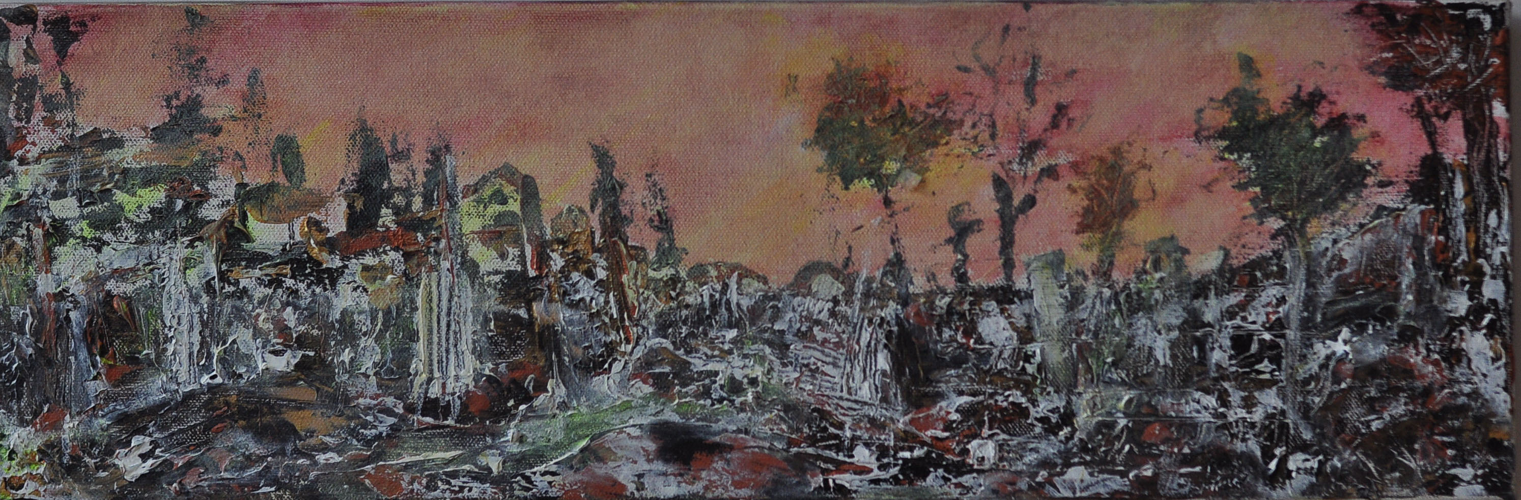 ציורי נוף חופשיים מדיטטיביים בפורמטים קטנים אנכיים היוצרים סביבה, באווירה של חלום