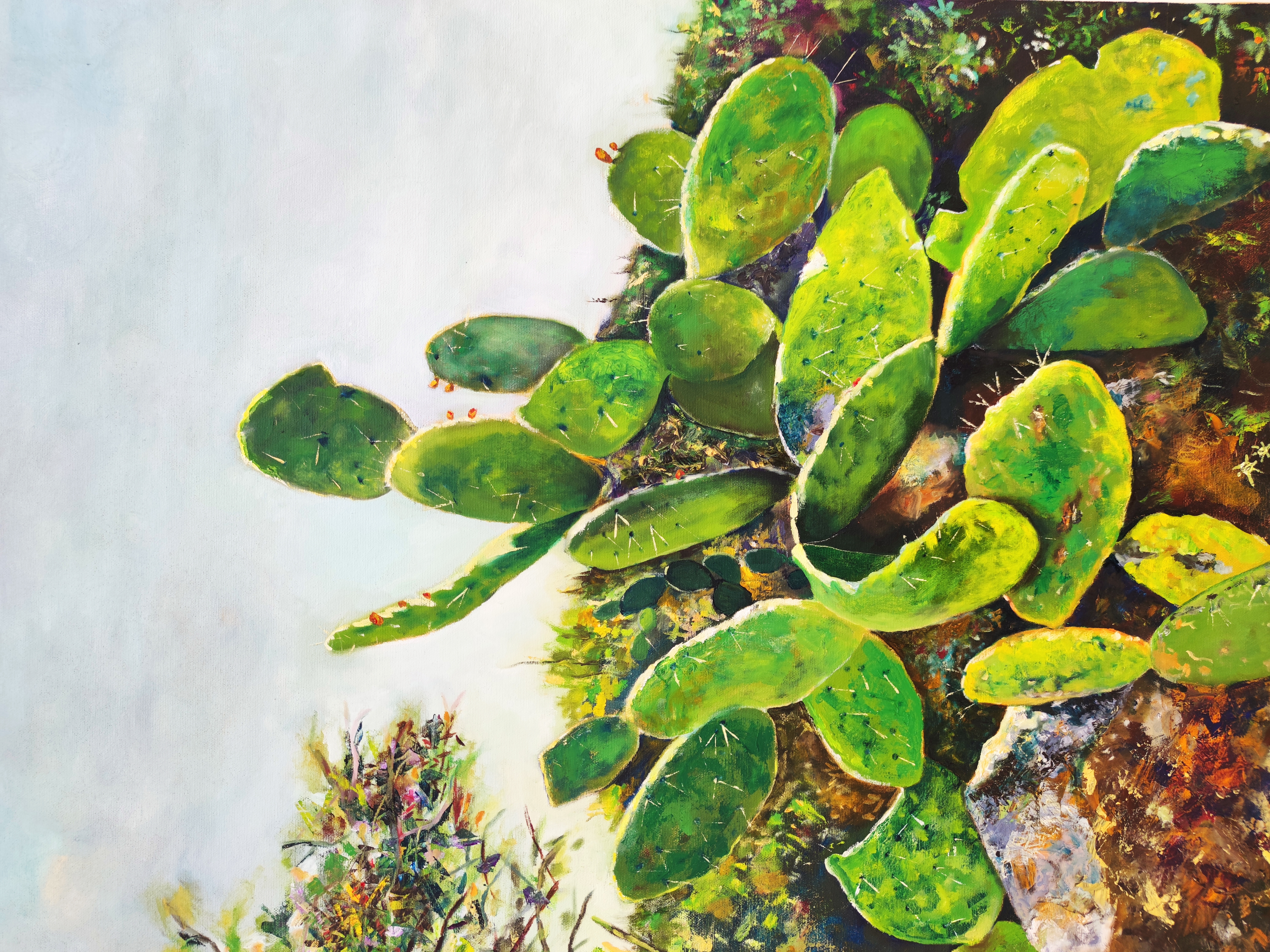 בציורי הצבר יוצר האמן קומפוזיציות דינאמיות, בהן חלקי הצמח מוצגים בתקריב, עד שהעלים הבשרניים מכסים את רוב הפורמט. התקריב יורד לפרטים עד כדי קוצי הצבר ופירותיו. ציורי שיחי הצבר משרים תחושה של מקומיות ושורשיות שאותם מחפש האמן כיליד הארץ, דור שני להורים מהגרים, שורדי שואה. במקבץ ציורי הצבר ניתן לחוש את החיבור לארץ ולנוף המקומי שהצמח כה מזוהה עמו.