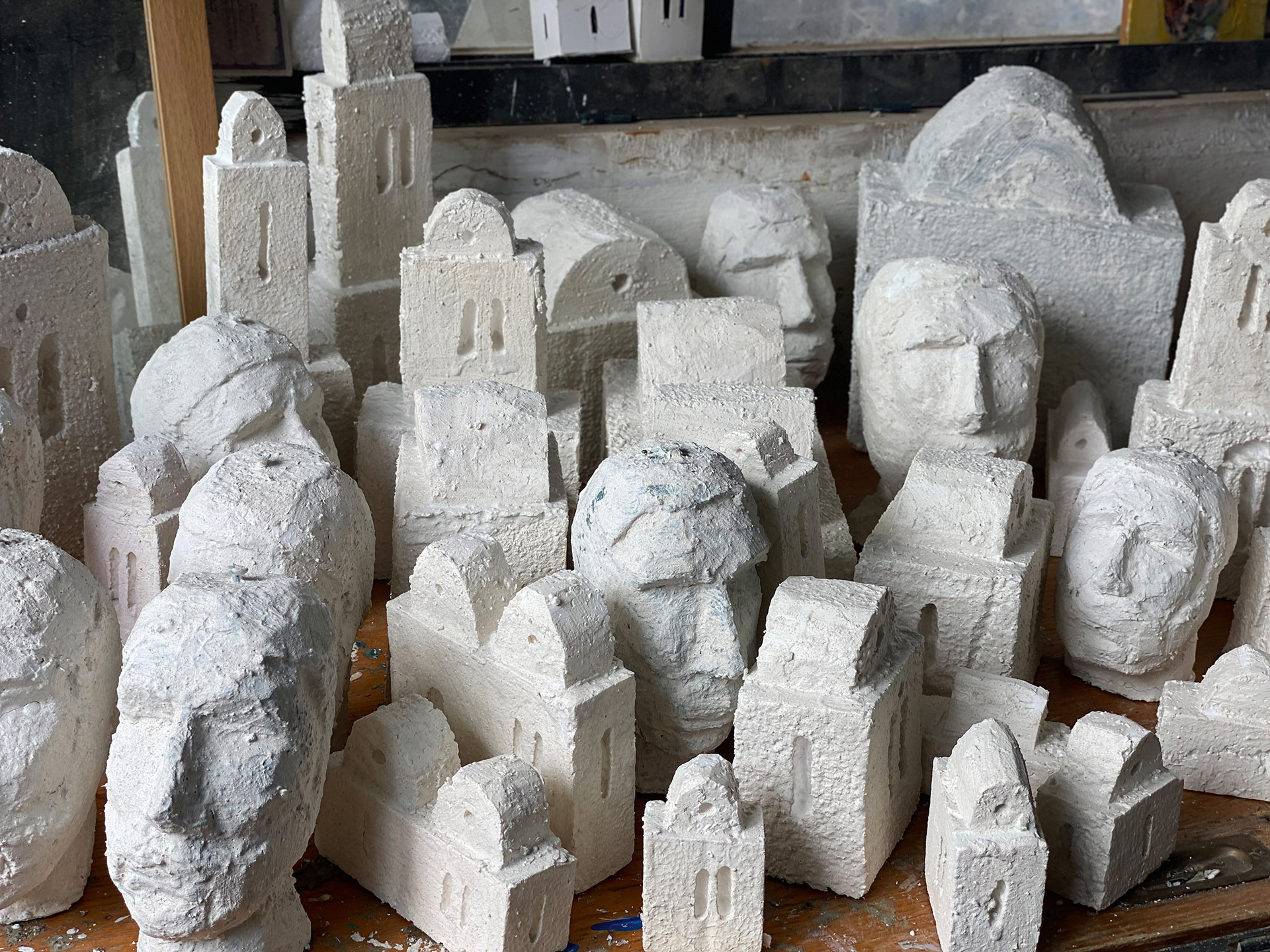 בין הדיוקנאות לאובייקטים נוצרים יחסים ומתחים חזותיים, בין חומרים הנתפסים כבדים ומסיביים לחומרים שבריריים, וכל הקונסטרוקציה נראית לעיתים תלויה על בלימה. “אני הורס ומחדש ואף פעם לא מרגיש שלמות אין-סופית; תמיד יש ספק, ספק בדבר. אני כל הזמן רוצה לגעת בחומר, למעוך אותו, לחוש אותו ולהוציא ממנו הרגשה טובה”.[2]