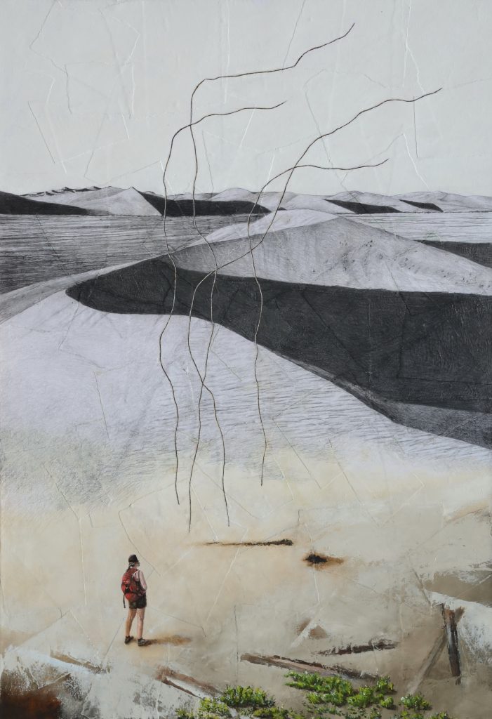 התחושה המופקת מהתבוננות במרחבים העצומים המתוארים בציורים, לא אחת כמונוכרומטיים, היא תחושת חוסר : של הימצאות בין כאן לשם, בין ההיות לבין ההעדר בו זמנית. עם זאת קיימת תקשורת בין הניגודים, בין הארץ לשמים ובין הכאן לשם.