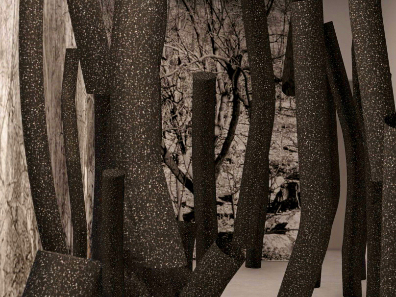 בחלל הגלריה נפרס מיצב, המתאר יער דמיוני, שרוף וכאוטי לאחר אסון אקולוגי. היער החרוך מציב את המתבוננים בתוך מרחב מתעתע, שמאזכר בו זמנית תמונת חורש טבעי יחד עם חומריות מטעה של עולם מלאכותי. באמצעות השפה הוויזואלית המקורית, תגית מעבירה אותנו למרחב אפוקליפטי בו ההצבה הנקייה מחזקת את האסתטיקה של ההרס, מדגישה את האין אונים של תוצאות האסון ומחדדת את כוחניות האדם.