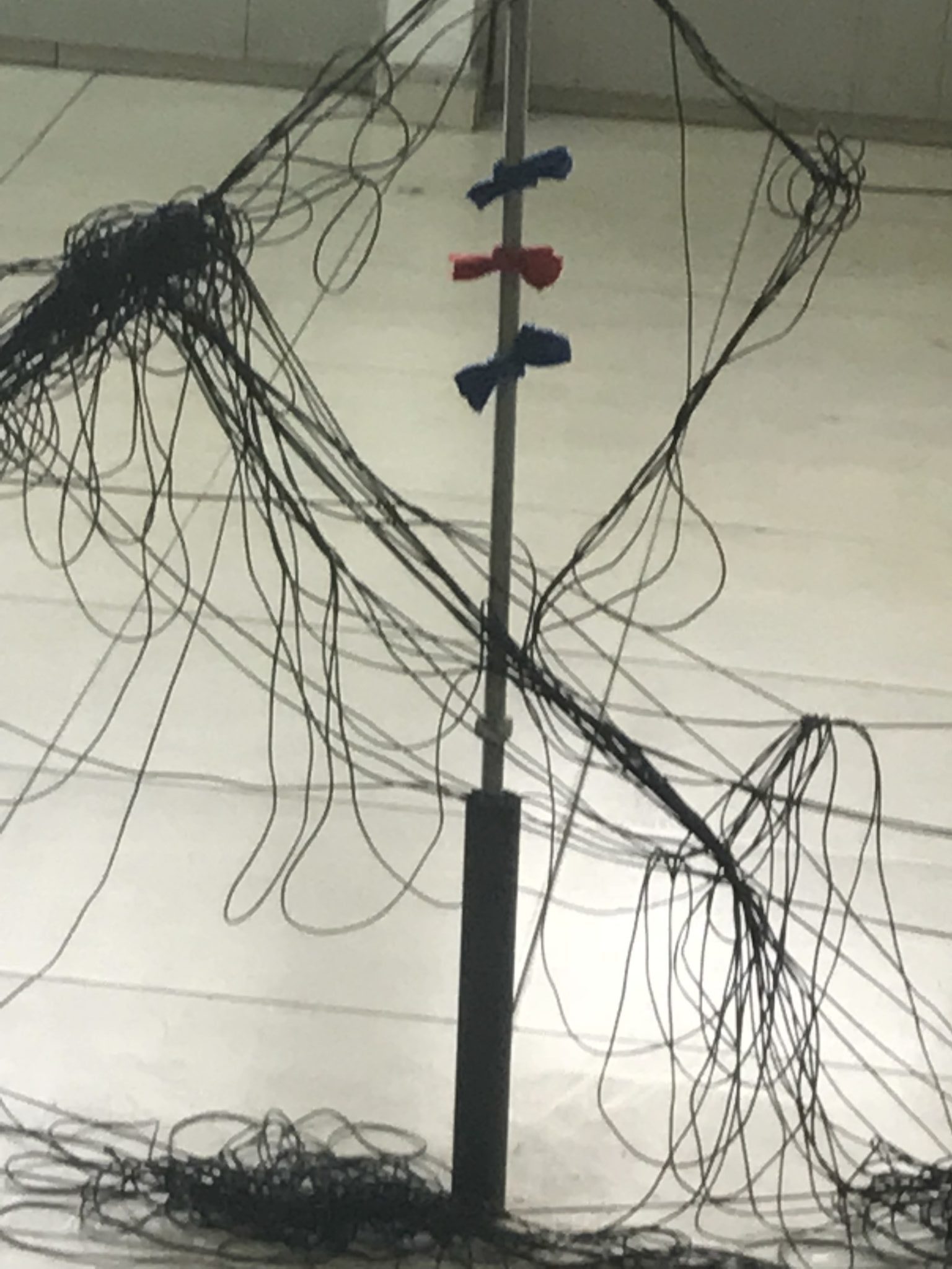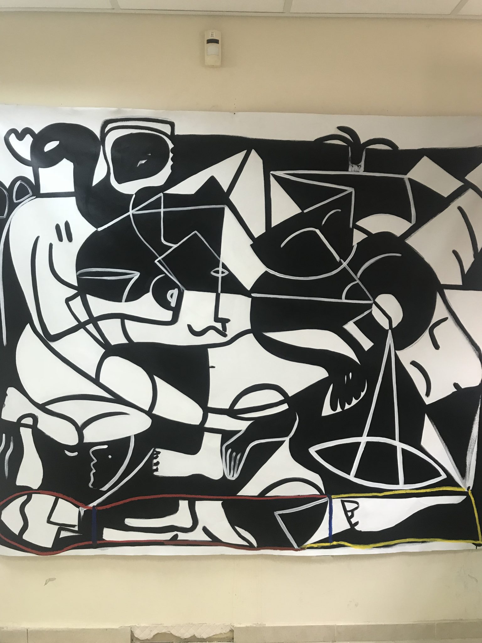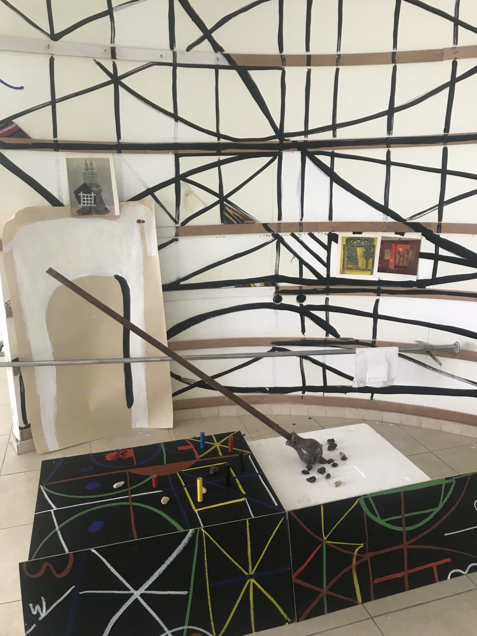 Her large paintings allude to modernism at its height – Leger, Malevich, and her beautiful, cruel collages flirt with Dada and Surrealism. Hajaj celebrates the dysfunctional institute shell she worked in turning it in to a transitional no man’s land laden with memories of wreaked utopias.