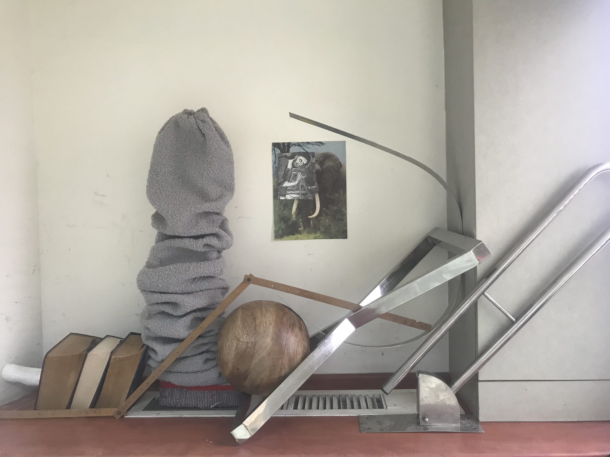 There is something totally absurd and fetching in office supplies, pieces of standardized furniture and décor , detached from any use, turning into free standing sculpture, objects with a retrieved depth and angst that seemingly lurked in them unnoticed .
