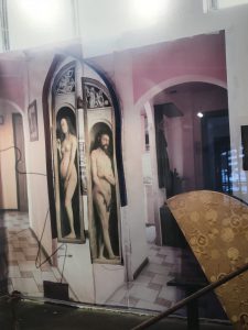 Detail (Adam and Eve Altarpiece (or the Adoration of the Mystic Lamb, 15th-century altarpiece in St Bavo’s Cathedral, Ghent, Belgium. Hubert and Jan van Eyck,