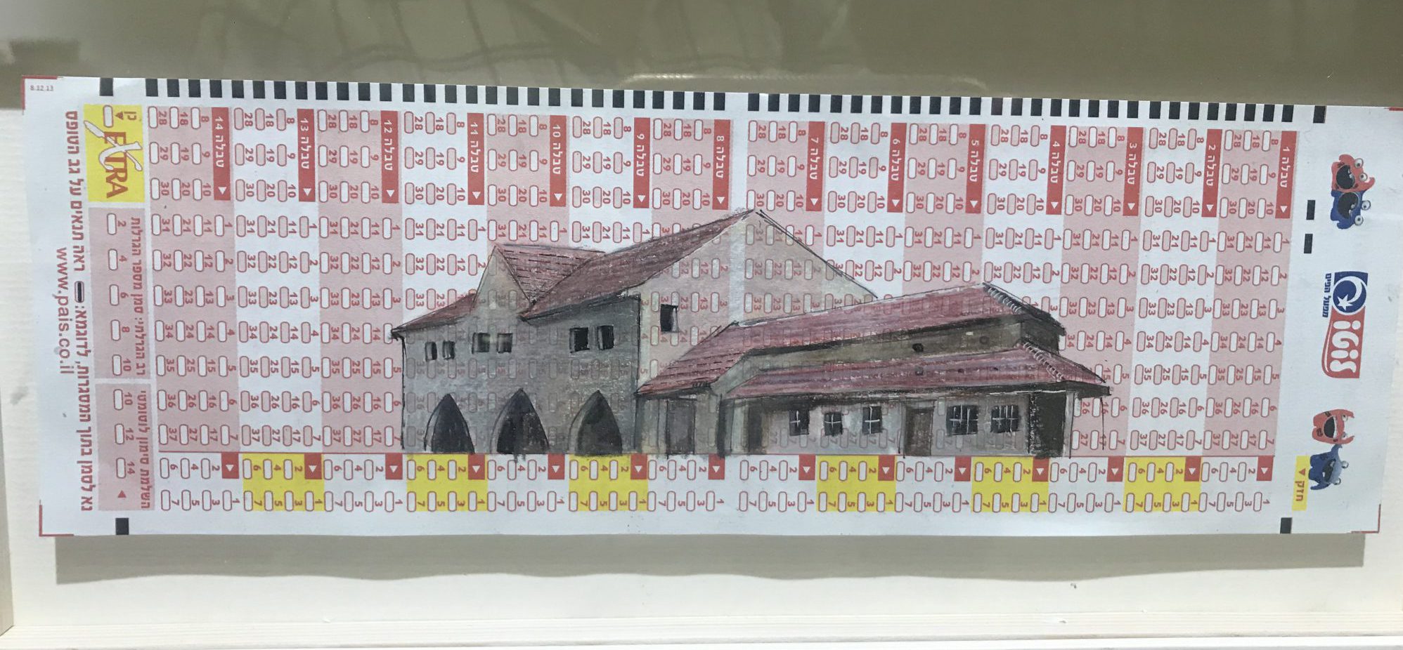 מור חזן , גרפיט על טופס לוטו . ב”אגדה מקומית ” עפולה2018