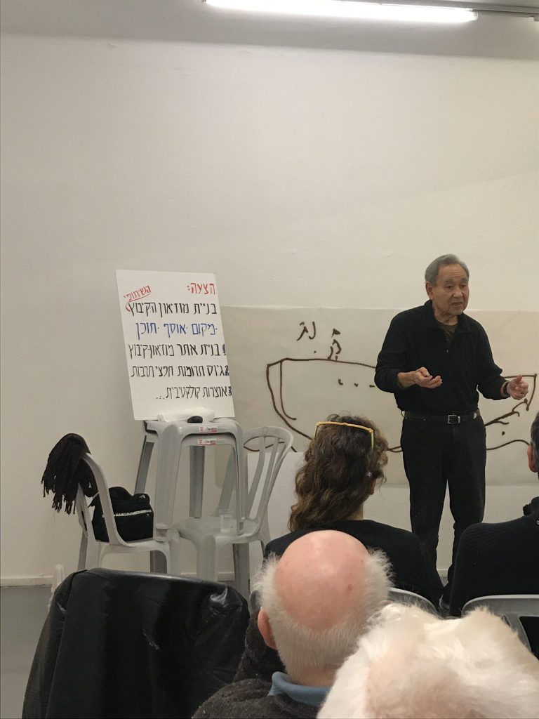 I attended the first part of the Gallery talk at the final exhibit, “Epilogue: What will happen at the end? Nitzan Satt with artists and architects.” It was Friday afternoon. A sympathetic crowd, on plastic chairs, among them only a few artists, listened to a hesitant postmortem lamenting the neoliberal closure and the giving up on values.