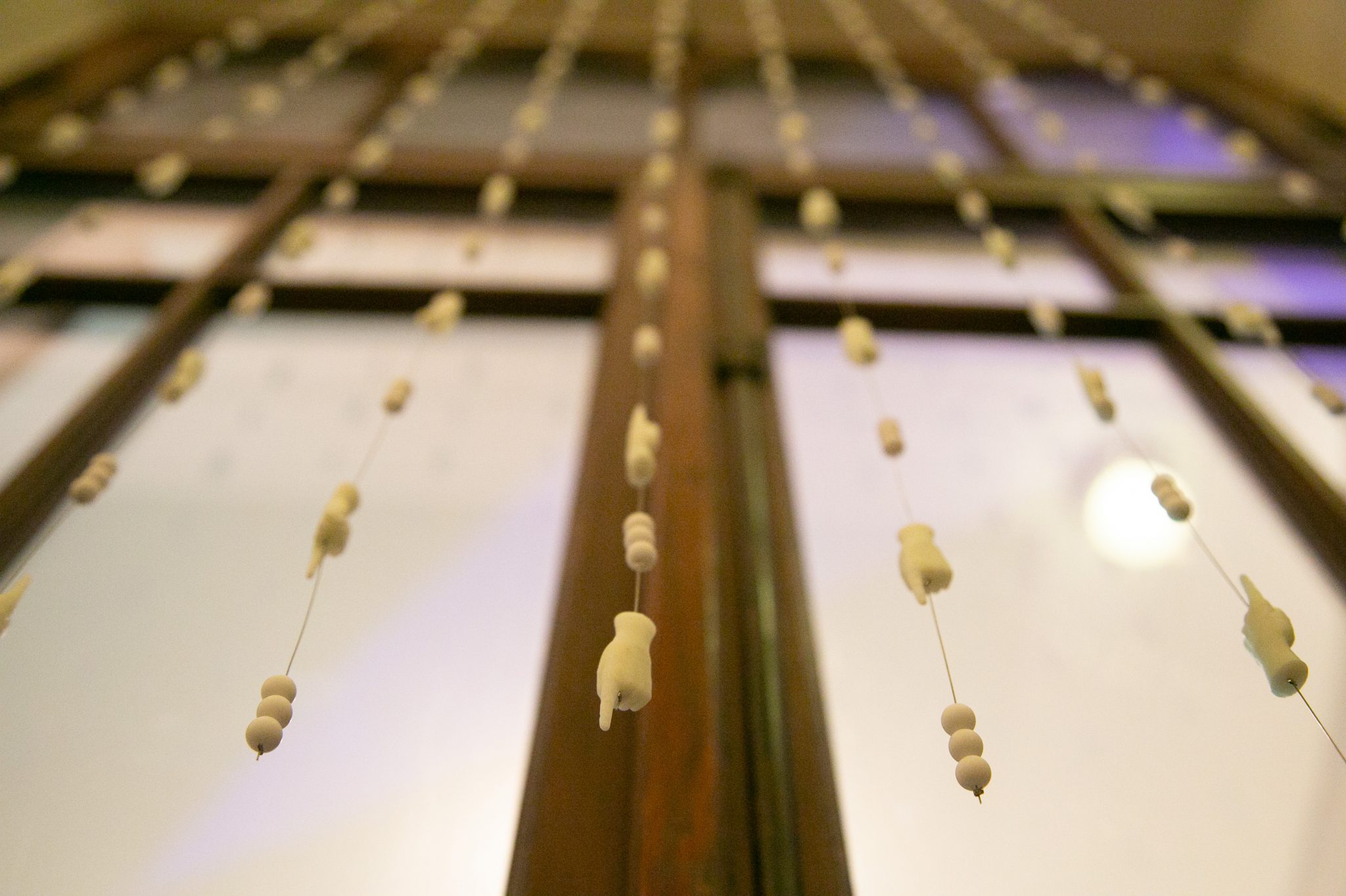 Lital Rubinstein, What is above, what is below, 2018. Curtain, beads, mixed media, 210x80cm