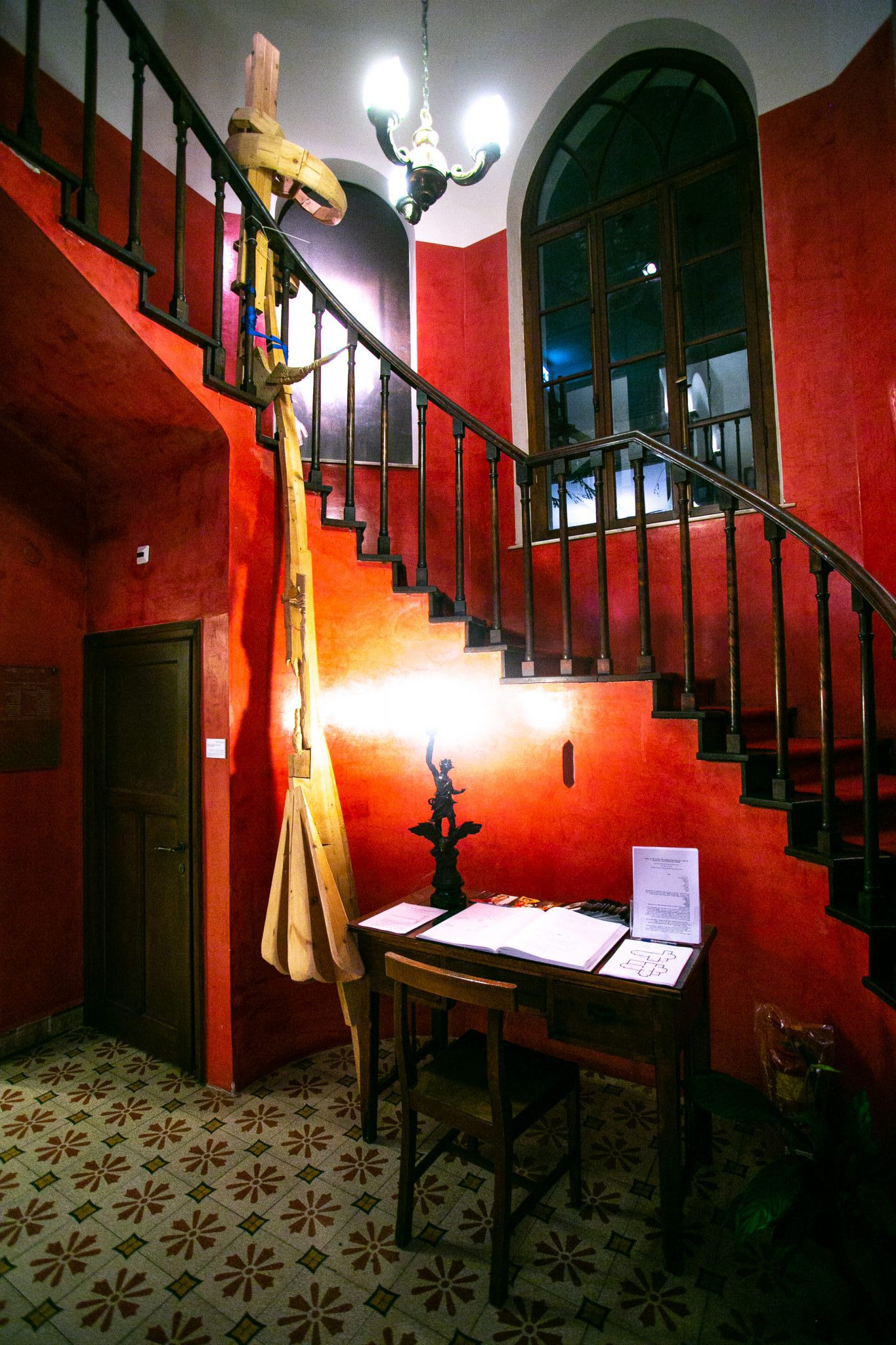 לצד גרם המדרגות, פסל עץ גדול, המטפס מקומת הקרקע לקומה העליונה. מדובר בהיבריד כהכלאה בין מכשיר חפירה לבין סירה, שמתכתב עם קו המדרגות המתעגל, מדגיש את החיבור בין הקומות העליונה והתחתונה. בפיסול העץ של קריכלי פרטים שכמו מחשבות אסוציאטיביות שייכות לא שייכות לגוף העבודה המרכזי, אתרים קטנים של יופי שיגלה רק המתבונן מקרוב.