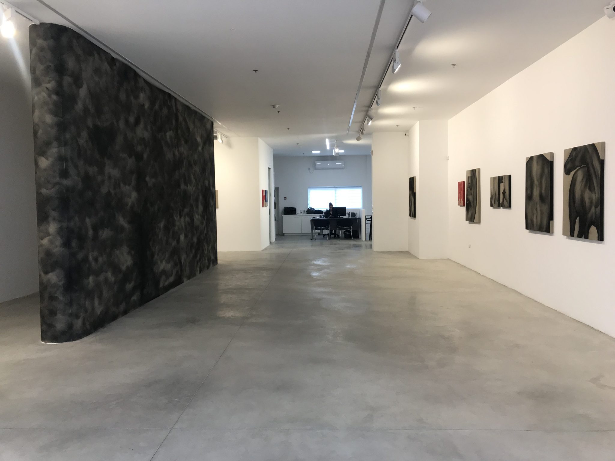 התערוכה היא תערוכת הפתיחה של חלל הגלריה החדש שנמצא ברחוב לילנבולם. זהו חלל גדול אך חסר הגובה הנהדר שהפך את החלל הקודם, ברחוב וולפסון לאחד היפים בעיר. KLONE יוצר בחלל החדש מייצב אלגנטי כשהוא עוטף שלושה עמודים בבד המדפס כעשן, או עננים שחורים, גוש שמים שנכלא או חלקיקים שעמדו להתפזר והתמצקו. קיר העננים/ עשן מתכתב עם הציורים שכמוהו עשויים צבעים מעושנים למעט אדום לוהב שמשמש לתיאורי אש.