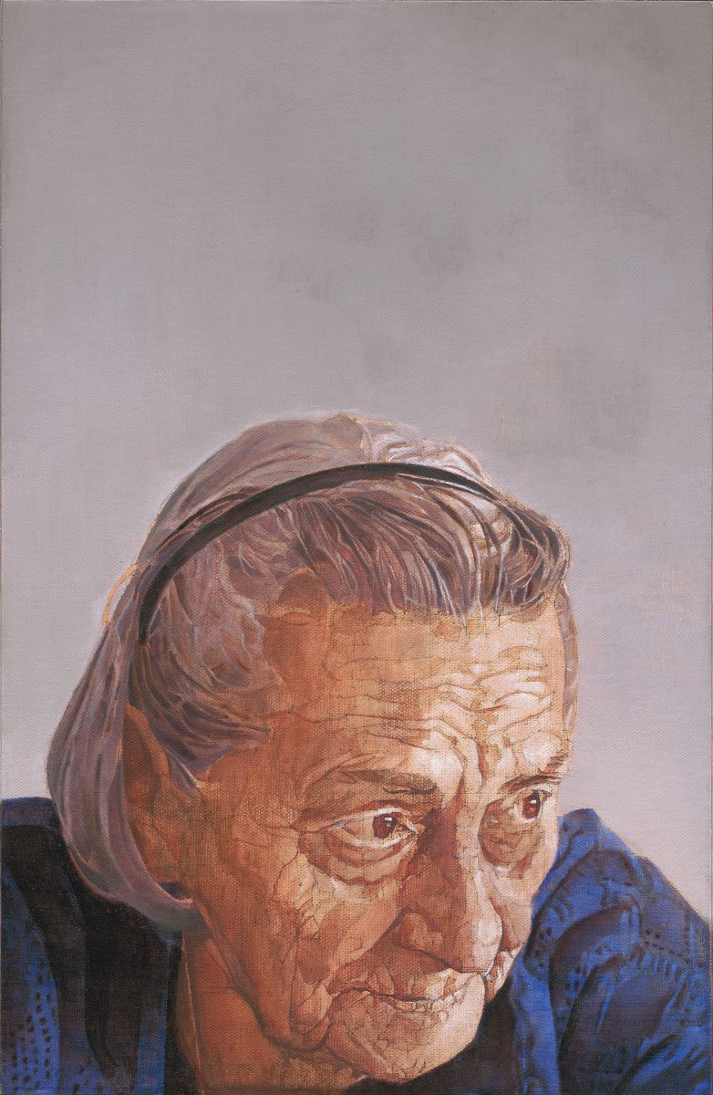 בארבע דיוקנאות האישה מרק מצייר זקנה בהשלמה, ללא זעם או סלידה, אך גם ללא ייפויי. בקו מרגש וצחיח באותה עת. פני האישה מאכלסים את החלק התחתון של העבודות כך שהיא כמעט חומקת, יוצאת מהתמונה, מטווח ראייתנו ובעיקר השגתנו. גם כאן חסרה האפשרות להתבוננות אינטימית וההסמכה לציורים של רונית גולדשמידט נדמה שנעשתה על בסיס המכנים המשותפים הקלישאיים ביותר.