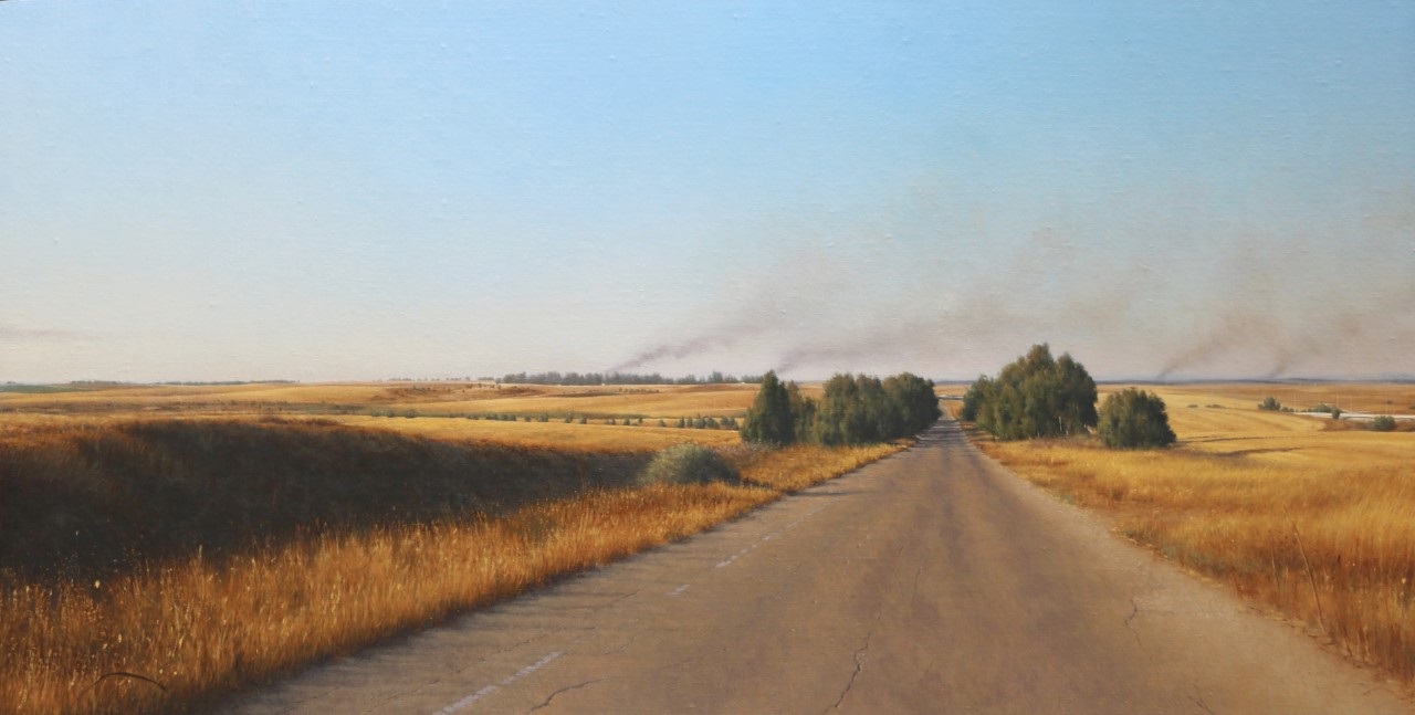 The gallery text neither illuminates nor cuts through the questionable connections. Regretfully, I was unable to find the exact quote by Merleau-Ponty which is the motto for the text and the entire exhibition. A quick Google search surprisingly brought up a 2012 interview with Aram Gershuni on American painter Larry Groff’s blog, Perceptual Painting. Gershuni is quoted in an interview with Elana Hagler as saying “Merleau-Ponty says somewhere: ‘Seeing is keeping at distance.’” A more precise location than “somewhere” was not found (but may exist).