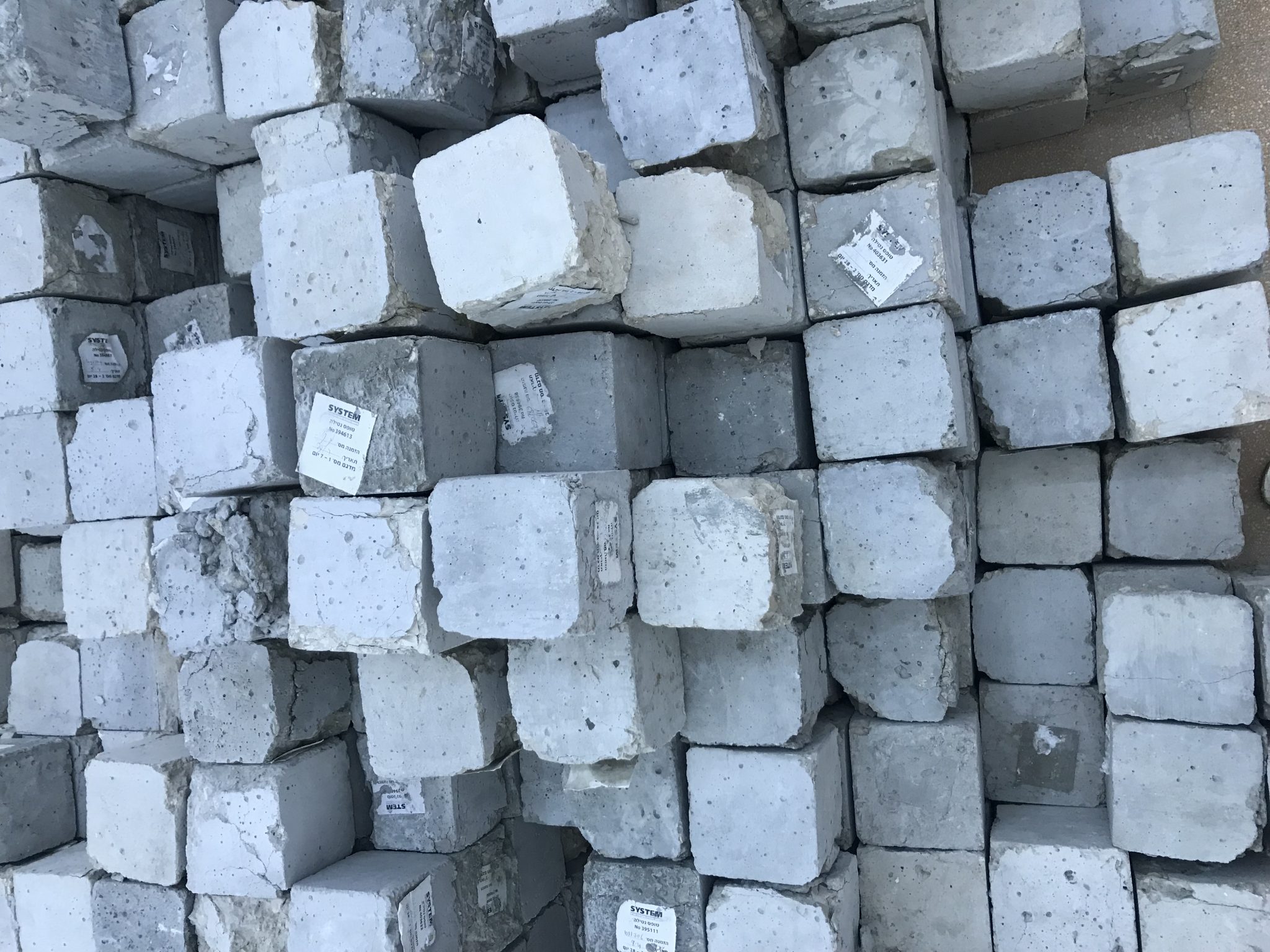Avraham Harush’s installationof concrete cubes used in quality control.