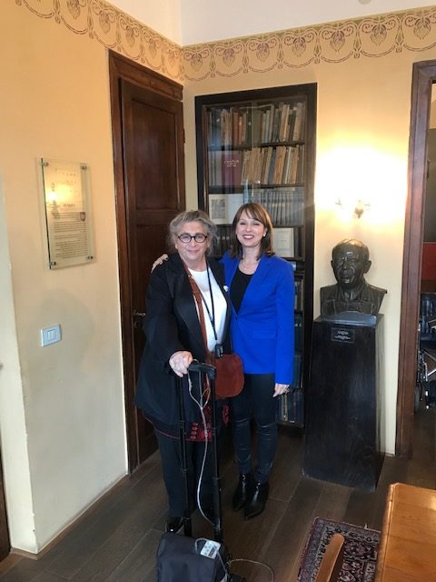 After heartfelt greetings to the staff, with Ayelet Bitan Shlonsky, Director and Chief Curator of the Bialik Complex, and Yakir Ben Moshe, its cultural programmer and member of the jury for the President’s Wife Hebrew Poetry Award, we toured the exhibition. Nechama observed each work carefully. She especially liked Lital Rubinstein’s Pendulum and Raafat Hattab’s puzzle made of Hebrew and Arabic lines from a poem by Bialik. In the Library, we discussed the humanism behind the poem “See Saw”(…”me and you, / both of us balanced on the scale between heaven and earth”) and the curatorial program for the research project “Art on the Second Floor.” She was interested in Dana Yoeli’s exhibit “Interior” and planned to visit the next exhibit, “Kikalon” by Tomer Sapir, then in preparation (soon to close). Unfortunately, she did not succeed. A few days after the memorable morning together, she underwent the long-awaited organ transplant.