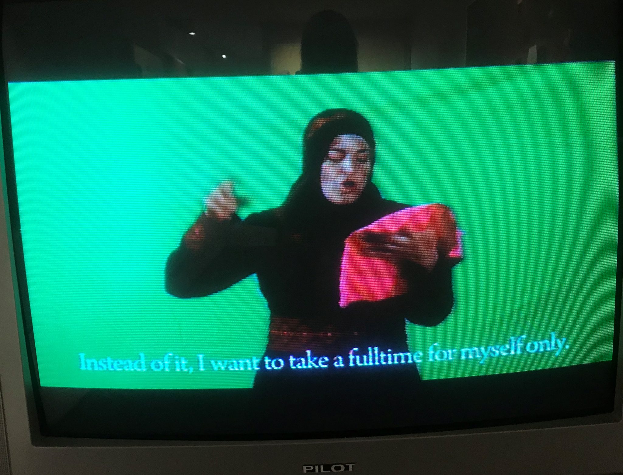 המיצב חדר המגורים של ג’נאת אמארה ובו וידיאו בו היא עושה שימוש בתבנית של סרטי שהידים הוא עוד עבודה בולטת .בווידאו אישה מדברת על רצונה להשתחרר ממסגרת חייה הביתית שמרנית אך גם דבקה בה .”כל הדברים שראיתי” של נגה מזרחי מורכבת ממנגנוני שעונים מתקתקים שיוצרים את שם העבודה בברייל. זו עבודה קונספטואלית מעניינת צרוף של דיבור על עיוורון , שליטה וזמן ובכך היא יוצאת דופן בשורת העבודות המעוגנות כל כך בהוויה