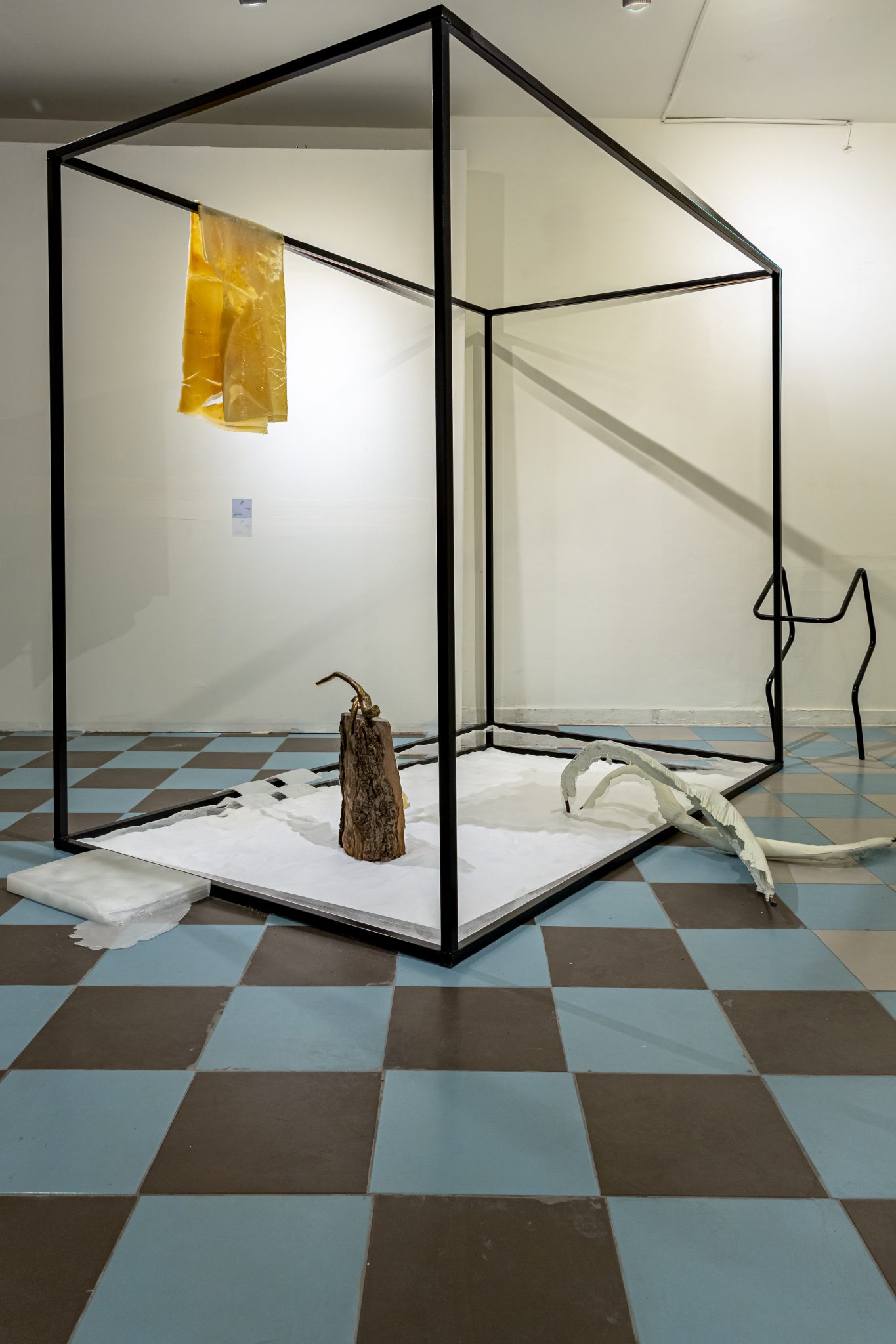 David Benarroch defines a space, frames it in metal and creates a spectacular dialogue between material and form. He approaches art as an essence with an internally directed vector, with and against which the artistic act evolves, but where randomness also plays a role. Benarroch uses salt, a material that disinfectants, heal, preserves and even kills, wood, and wax, along with synthetic materials like silicone and nylon. He creates dialectical dialogues between the materials that processing methods, such as heat, change in unexpected ways.
