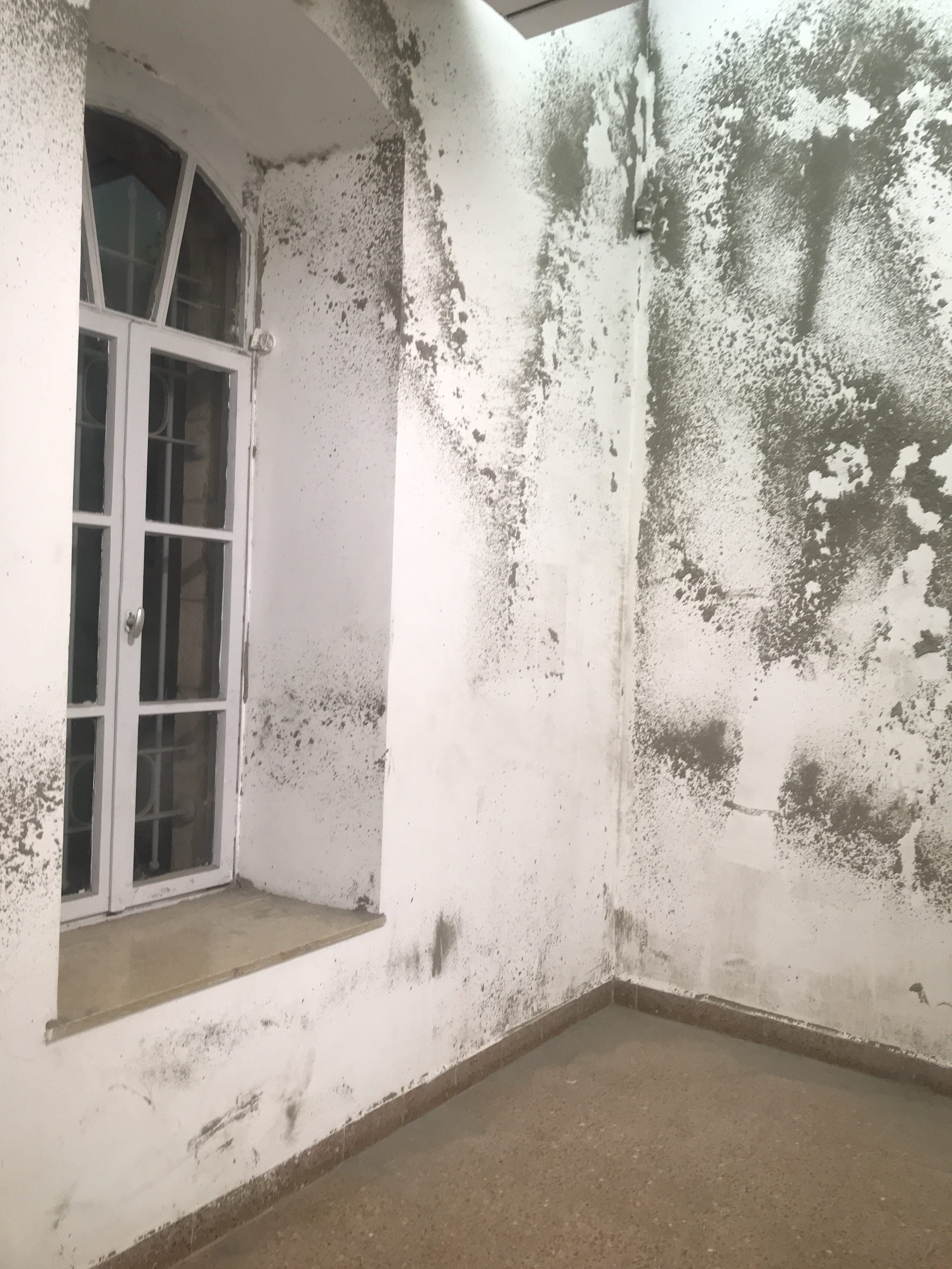 Among the more interesting works is Cement by Avner Pinchover, an artist whose video Chairs stood out in the Midrasha MA exhibition in the summer of 2018. The video depicts Pinchover hurling chairs against a plaster partition or wall, punching holes in the surface. Some perceived it as an outburst of uncontrollable rage. In Cement, he threw cement on a wall (without an audience) resulting in a troubling yet lovely image conducting a dialogue with the Artists’ House harmonious building. The gradual crumbling of the work during the months of the exhibition makes it even more complex.