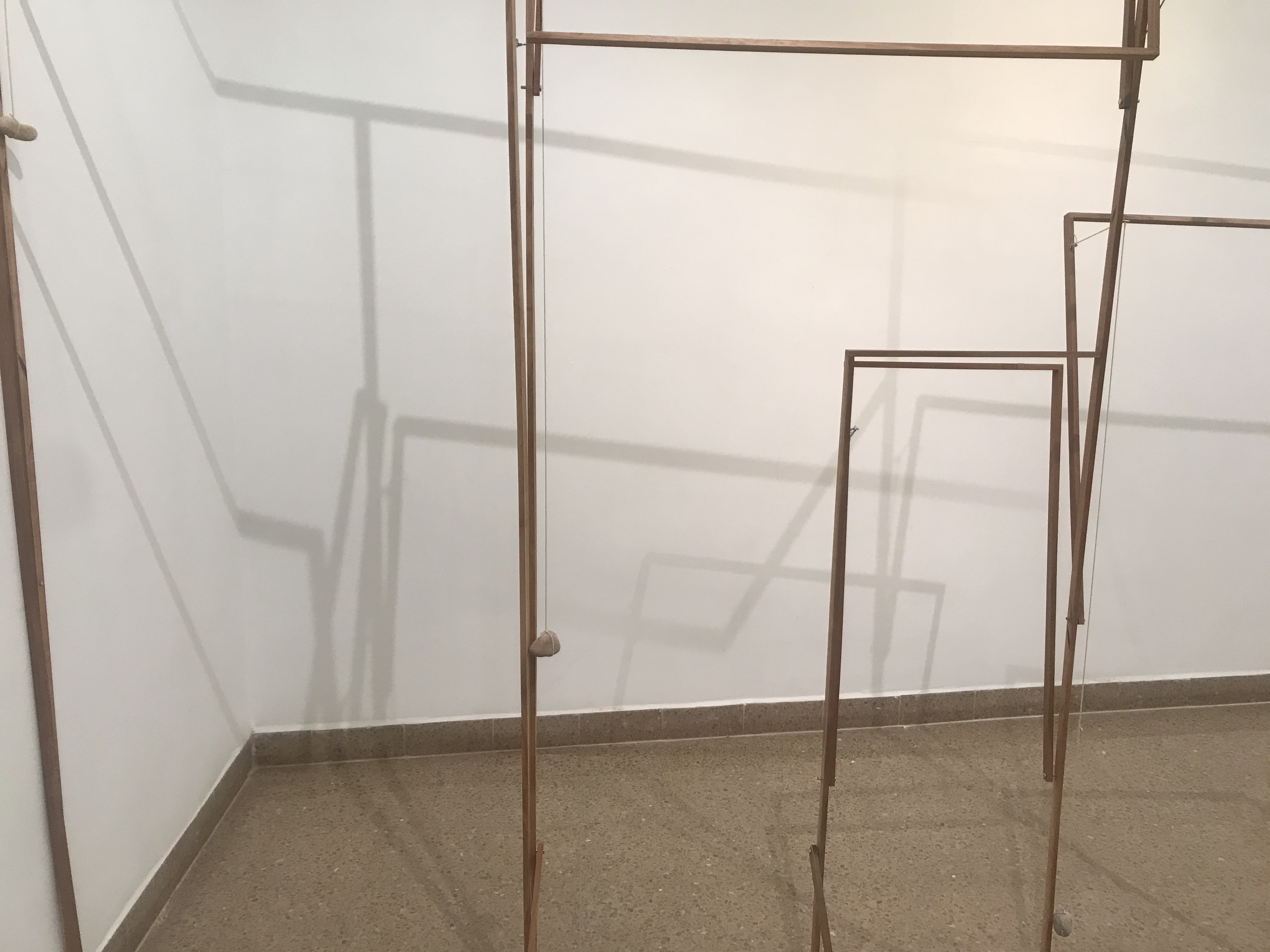 Tchelet Ram, Overtime, 2018, Wood, hinges, wire, stones, Dimension variable, photo Liat Elbling