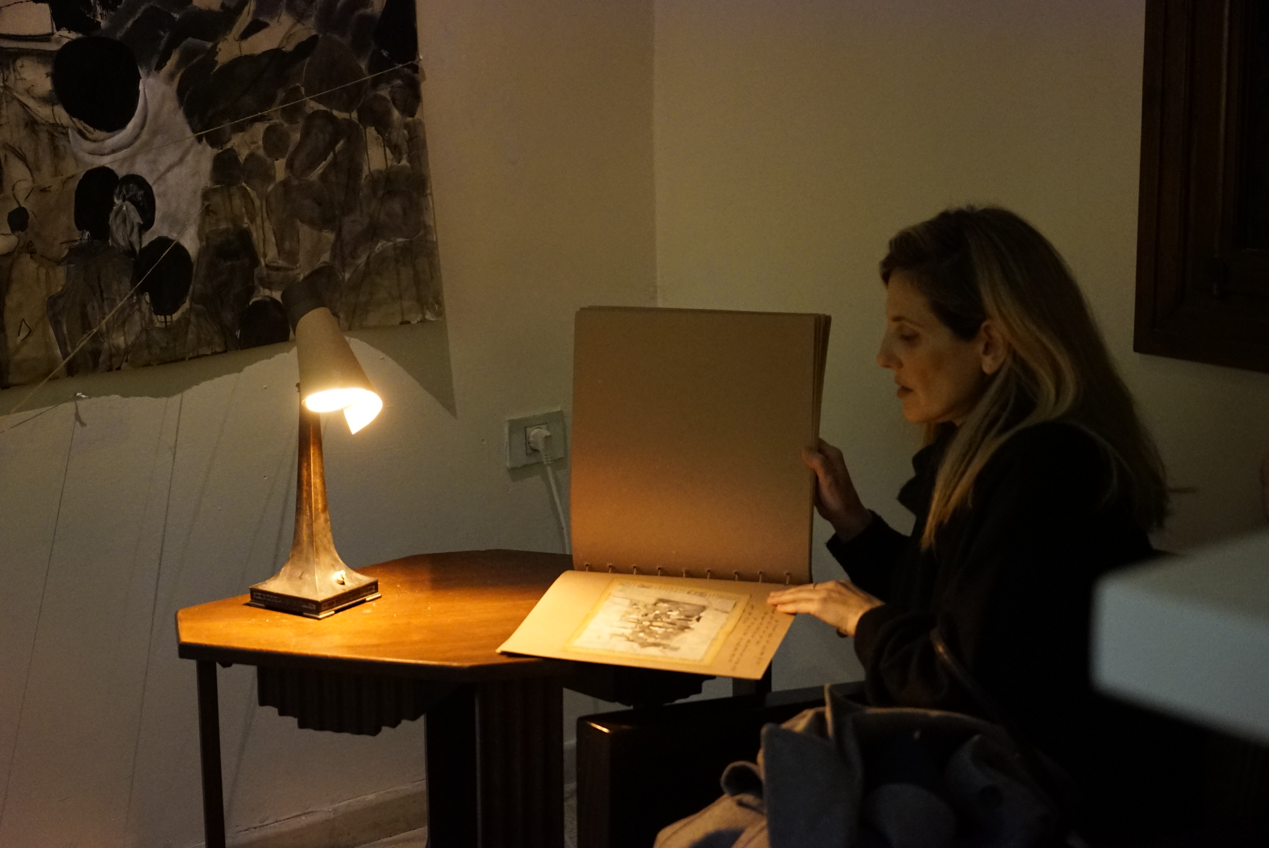 On another wall Navon built a library comprised of photocopies of letters, articles on the Tel Aviv Oneg Shabbat afternoons and on the Oyneg Shabbes Archive of the Warsaw Ghetto.