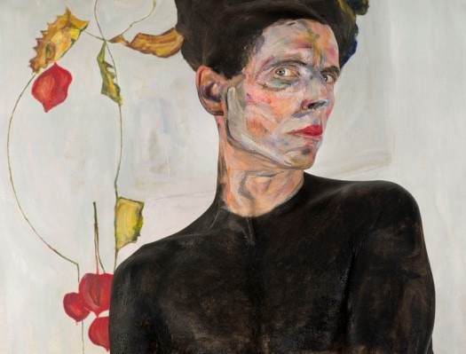 Using video, stills, painting, drawing, and performance, Platnic “resuscitates” works by Schiele, one of the superb artists of the early 20th century, but the question remains as to why. It seems that there is no real justification. Schiele (1890-1918), was active during the glorious decline of the Austro-Hungarian Empire. He transformed the rich, self-satisfied Viennese Jugendstil on which he was raised into art that got under the skin, allowing not a moment’s rest. The lines in the drawings made between 1907-1918 are tensed to the point of pain: shattered and bleeding, they delineate fragile figures (and landscapes) that maintain eye contact with the artist and viewers that is both submissive and apprehensive. His short life, which ended at age 28, only made him more admired in contemporary art; he was mentored by Gustav Klimt, who promoted him and helped him. Recognition was almost immediate, as Schiele’s works were exhibited at important venues, especially in Germany, and published in major periodicals. Along with his artistic success, he was arrested for immoral behavior (the judge burned one of his drawings in court). As mentioned quite frequently during the current pandemic, he died from Spanish flu in 1918, three days after his pregnant wife died in the epidemic.