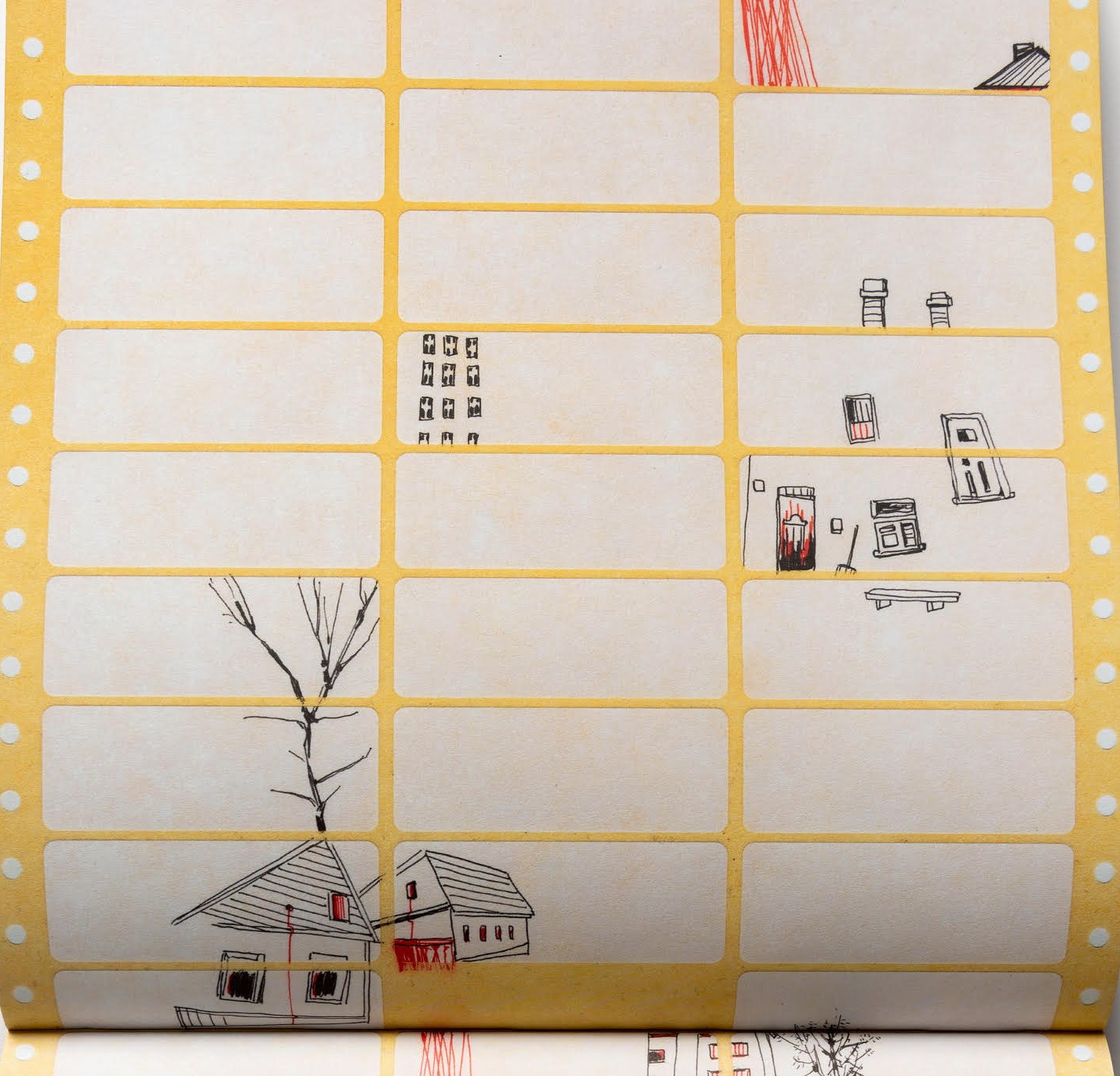 סיפור הערעור מסופר תוך שימוש בדימויים של משרד מיושן :מדבקות , צד אחורי של ניירות קופי , דפי משבצות , טפסים כחלחלים מחוררים, אסתטיקה של בירוקרטיה, אדמיניסטרציה – יציבות . על ליד ובין הדימויים רישומים בשחור אדום לבן, הצבעים של כוחות טוטליטריים (נאציזם, קומוניזם) או אילי כוח כלכלי כמו קוקה קולה. דמויותיה ללא פנים , מצוירות בדרך כלל מן הגב או הצד, עורגות ליציבות ונטועות בלב הכלום, המדבר של הדפים ששין בן אלון מנכיחה.