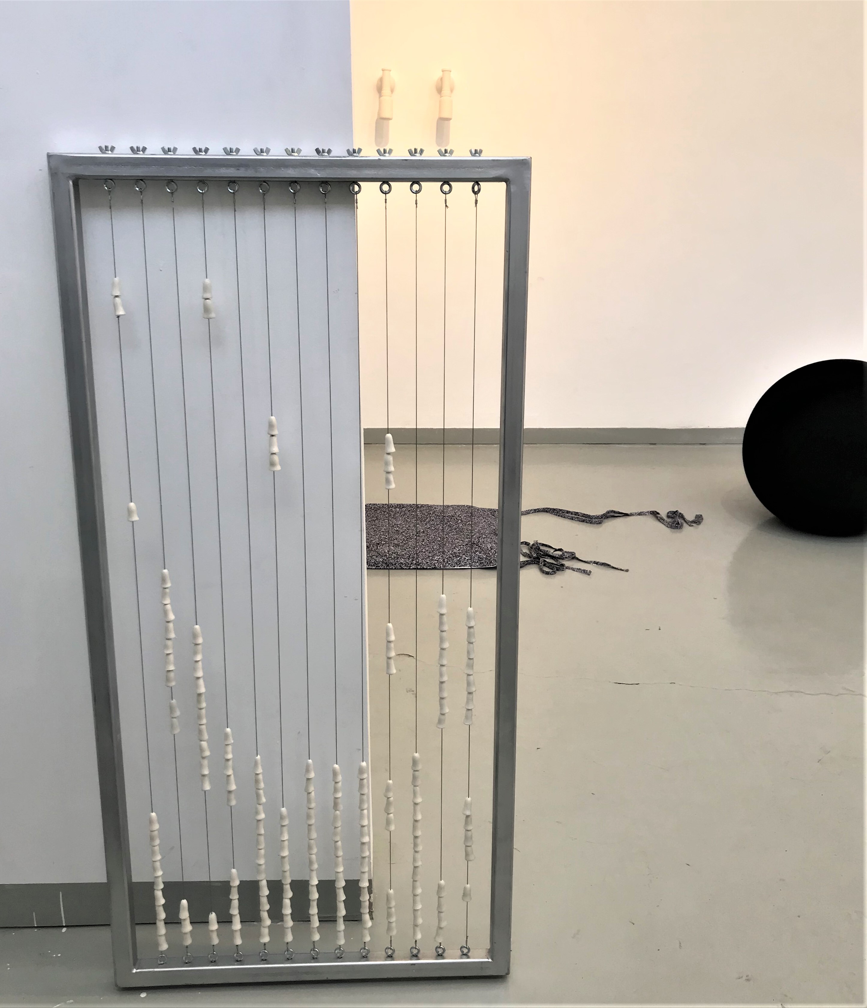 The universal experience of giving birth and raising children has limited scope of representation today, as well. Entering the area of fears and doubts that come with the birth of a child, the change in scale in terms of the body changing shape in pregnancy and exhibiting elasticity, as well as the changing order of priorities can easily slip into emotionalism. In this small, precise exhibition, Rubinstein succeeds in speaking about the circle of birth, beginning and end of life, without any pathos. Through the breast pumps, the artist notes the danger of the mother becoming limited to a mechanical function, as suggested in the abacus with little nipples instead of beads.