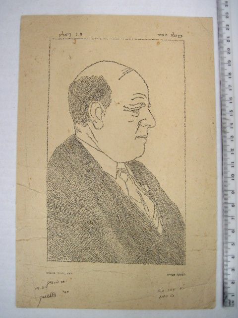 דיוקן הרצל ודיוקן ביאליק שנכתב כולו מטקסט מגילת האש (1905).