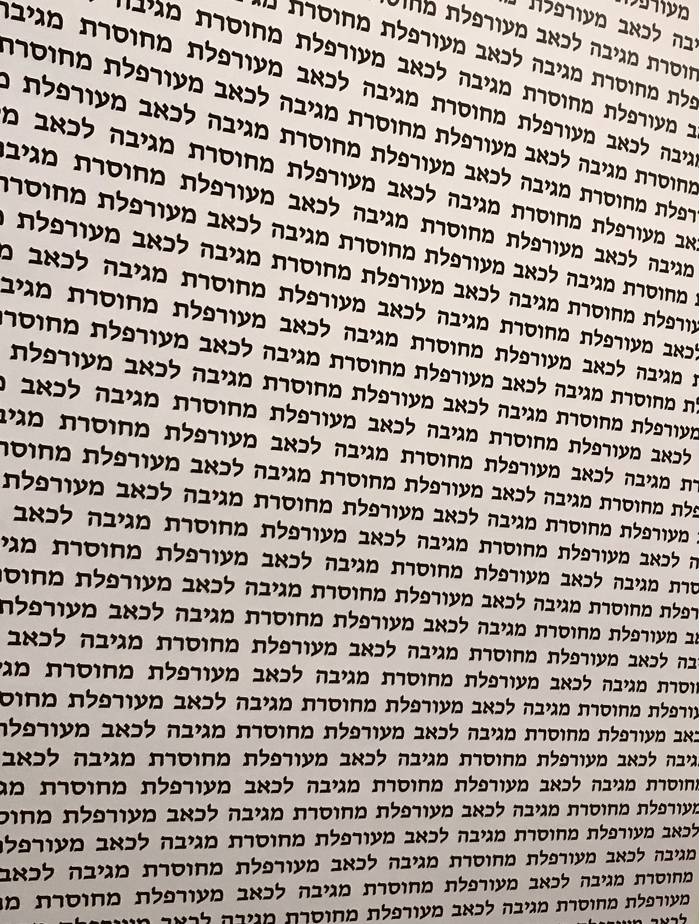 עבודת טקסט של אסרף ממשיכה את הטיפול המרוחק בסיטואציה טראומתית. שוב ושוב, בפונט ורווחים קבועים חוזרות המילים “מעורפלת” “מגיבה לכאב” “מחוסרת”. העבודה הקטנה מזכירה מאד את העבודה של האלה אבו קישק שהוצגה לפני מספר חודשים בתערוכה “מאות פעמים” שאצרתי במרכז לאמנות עכשווית ברמלה. שם בעבודת ענק (ברוחב חמישה מטרים) כתבה אבו קישק, בעברית וערבית, מילים שחזרו שוב ושוב תיאורים של נשים שחוו אלימות וניצול מיני. אסרף הייתה אמורה לערוך מייצג בתערוכה ולדאבוני הדבר לא הסתייע בשל דחיות ומגבלות הקורונה.