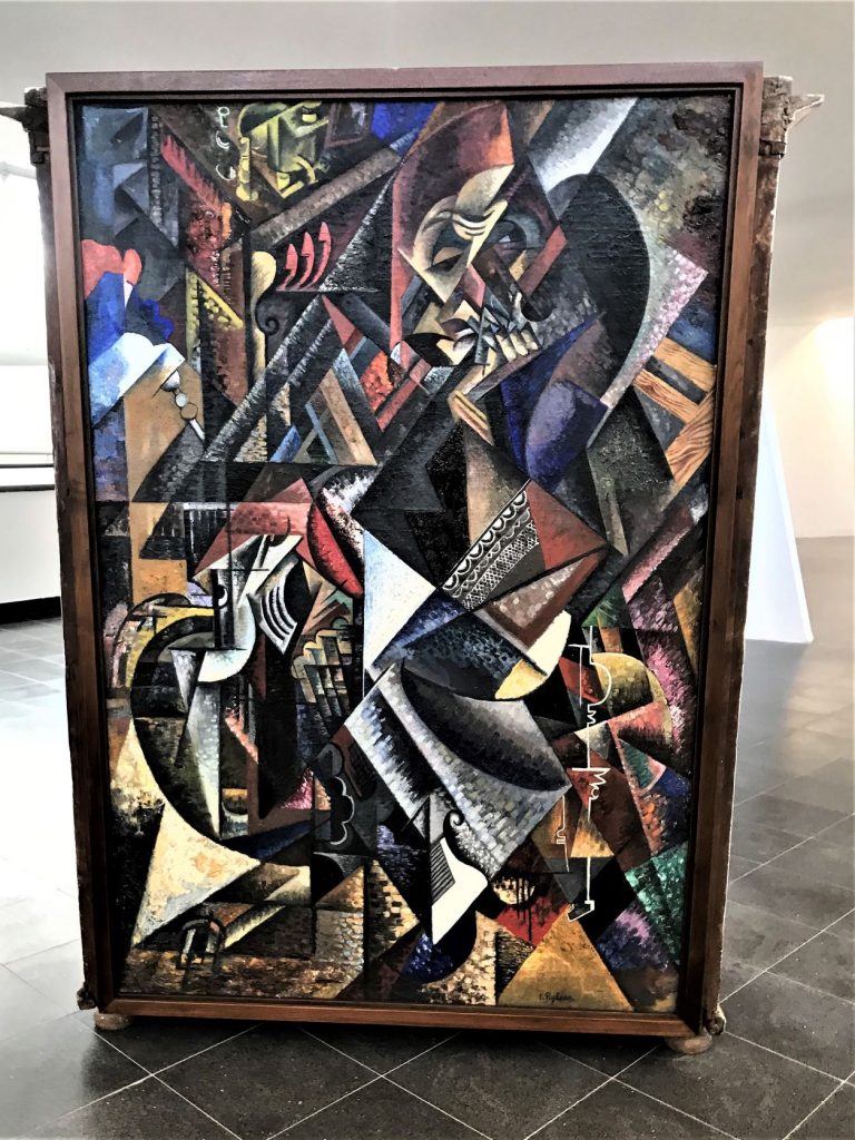 Ryback’s works are skilled, reminiscent especially of Marc Chagall and El Lissitzky (his colleagues on the delegation for the documentation of Jewish art in Ukraine and White Russia during World War I, similar to S. An-sky’s mission a few years earlier). The two outstanding works, Berlin Woman and Old Woman, both dated 1918/23 are cubist with a Futurist motion to them and an intensity that is not usual in his works. On the entrance level to the Museum are works interesting in the context of Ryback’s work, especially Yael Efrati’s Door in its link to Ryback’s soft Cubism, but here, too, we are missing a unifying factor.