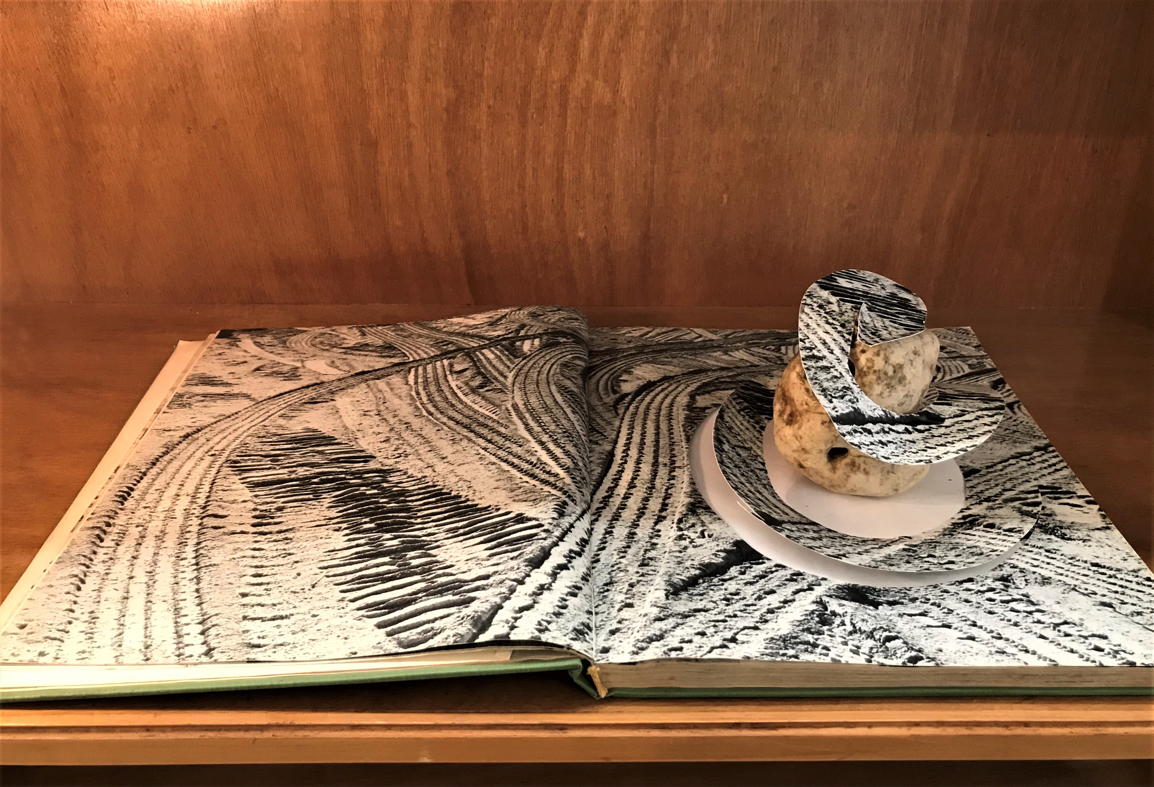 imaginary hobby-horse made of materials that can be folded up and disappear like magic, like a flash of the past in the present. Sculptures by Shani Pri-Ness, a book and small sculpture by Michal Helfman, several sculptural objects looking like pins or jewelry by Naama Arad placed on chests and bookshelves touch upon the exposed nerves of emergent memories and shame of oblivion arising from the cultural history embodied by the house. At the entrance and exist are two sculptures by Noa Schwartz, a cross between gravestones and minimalist sculptures and shamanist signs, gaze at viewers like signposts for neglected roads.