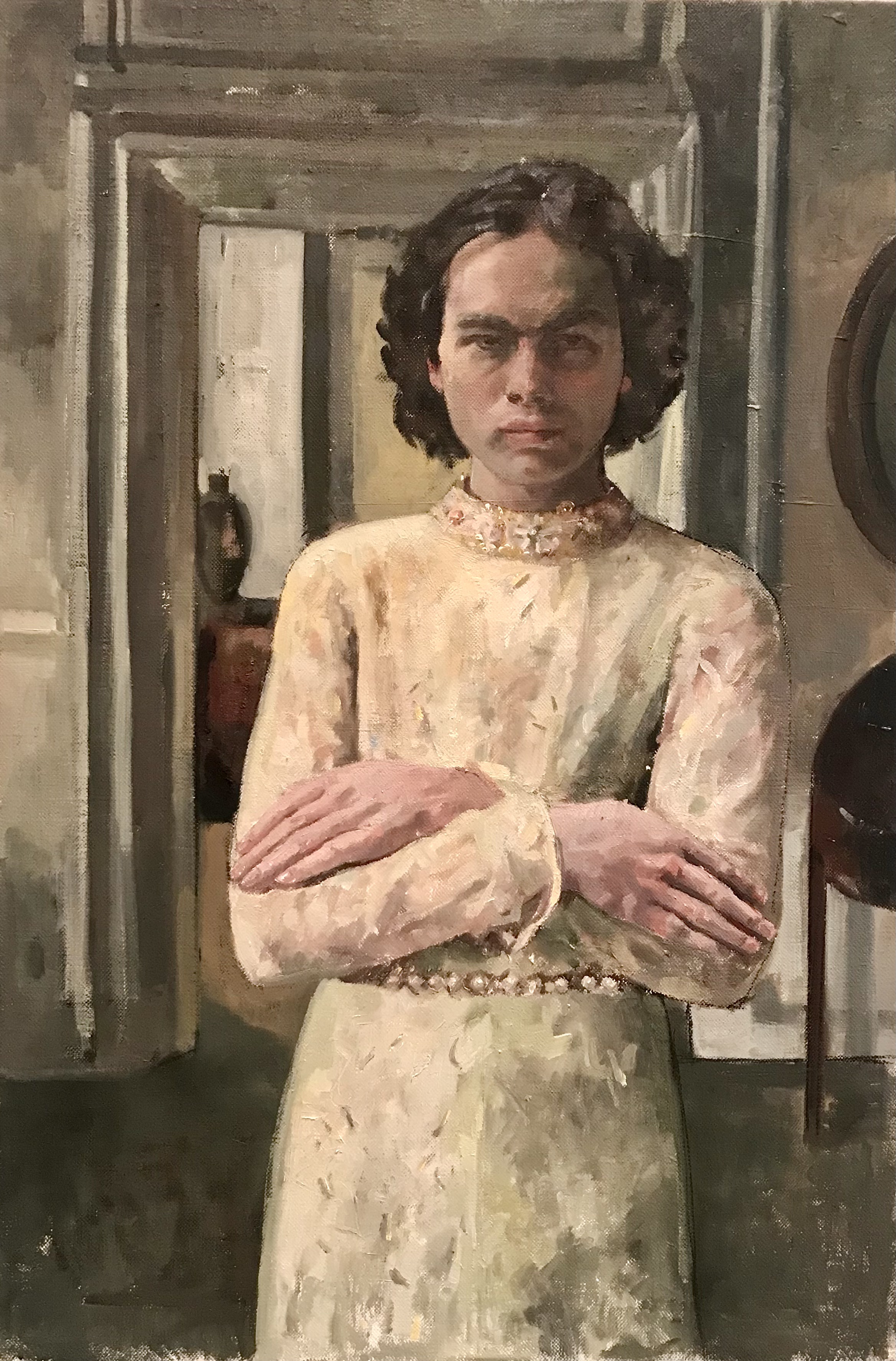 Roni Taharlev’s Boy in a Yellow Dress, on view in “Skein,” the Tel Aviv Museum’s exhibition of New Acquisitions for the Bruce and Ruth Rappaport Israeli Art Collection, suffers from the “second-rate syndrome” characterizing most of the exhibition, which is comprised of especially weak works by good artists. Taharlev, who exhibited many excellent works over recent years, is here represented by an apologetic work, a painting whose entry ticket to the exhibition is its engagement with gender.