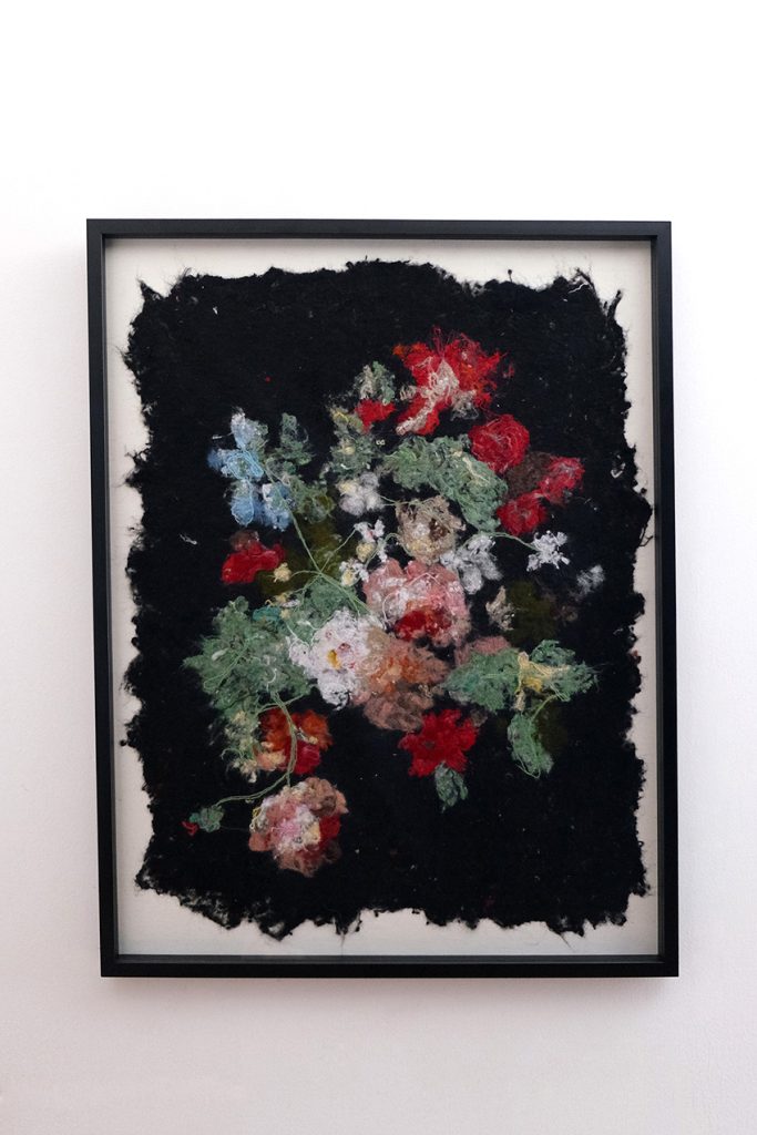 Shredding textile waste to fibers Arranging fibers and yarns Needle felting. / 67×54 cm, 2021