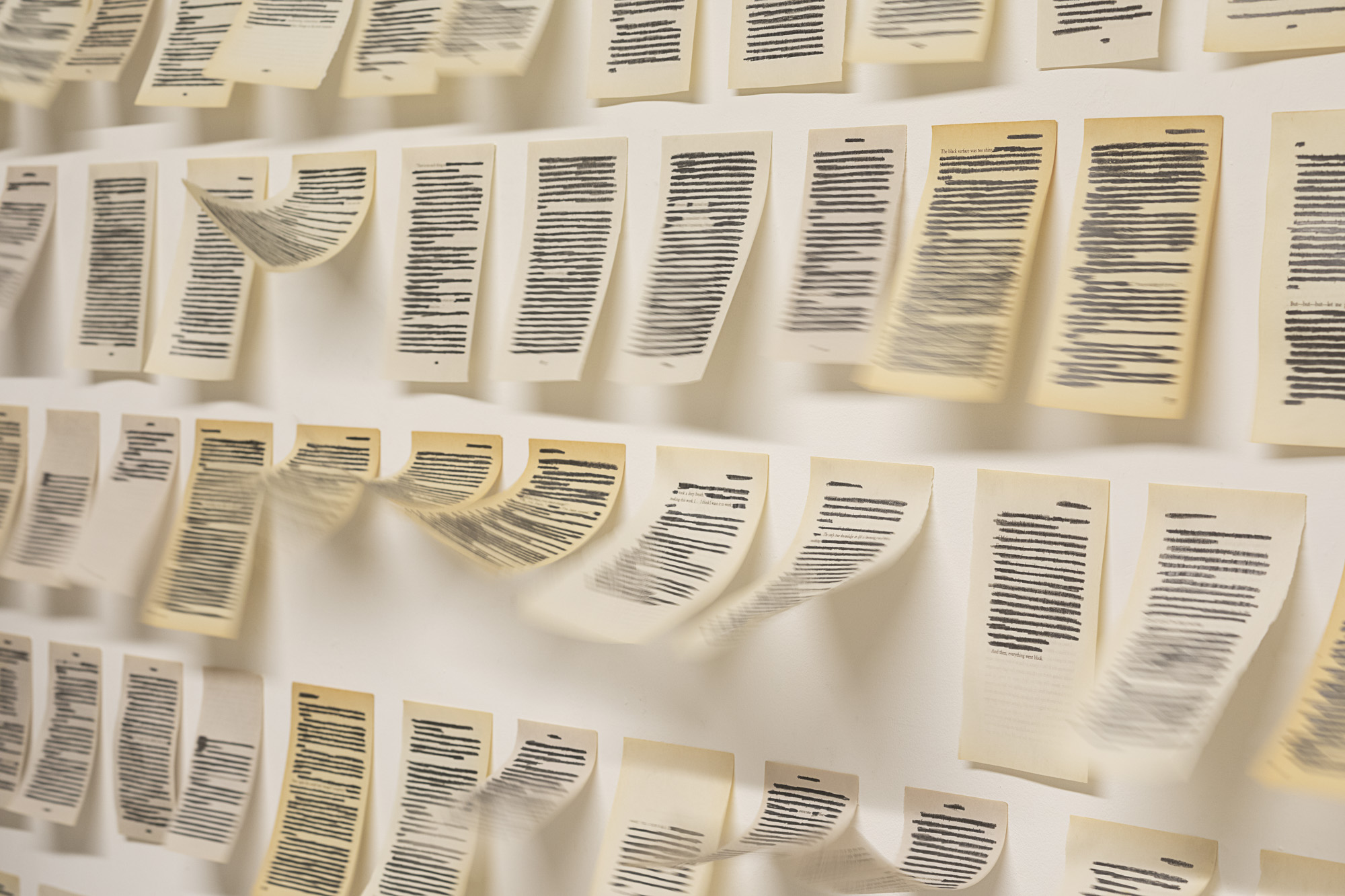 בתערוכה Time didn’t exist, space didn’t either מאות דפי ספרים, תלושים, שדיאנה קוגן מחקה בהם טקסטים. בין השורות הותירה קרעי משפטים. אלו, כבאלכימיה פלאית, הופכים שירה.