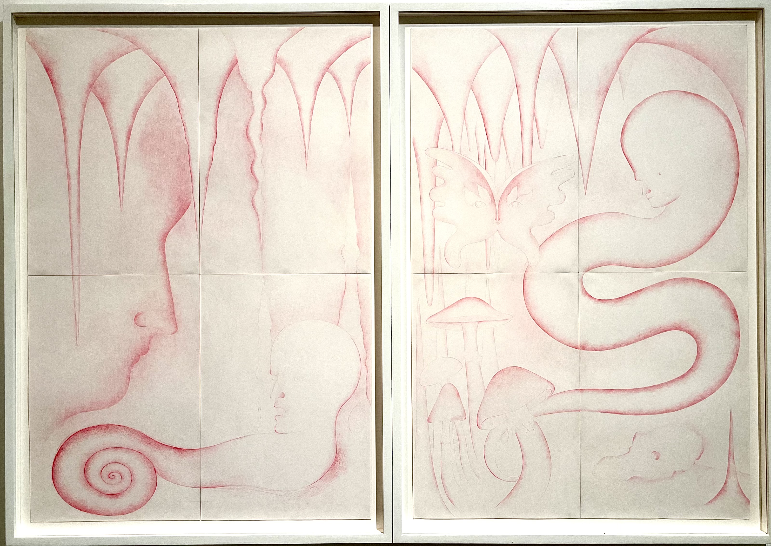 There is outstanding quality in this exhibition, but I would remove two drawings, especially the one showing a hand grasping a flower, and would want to see it sharper and more polished.