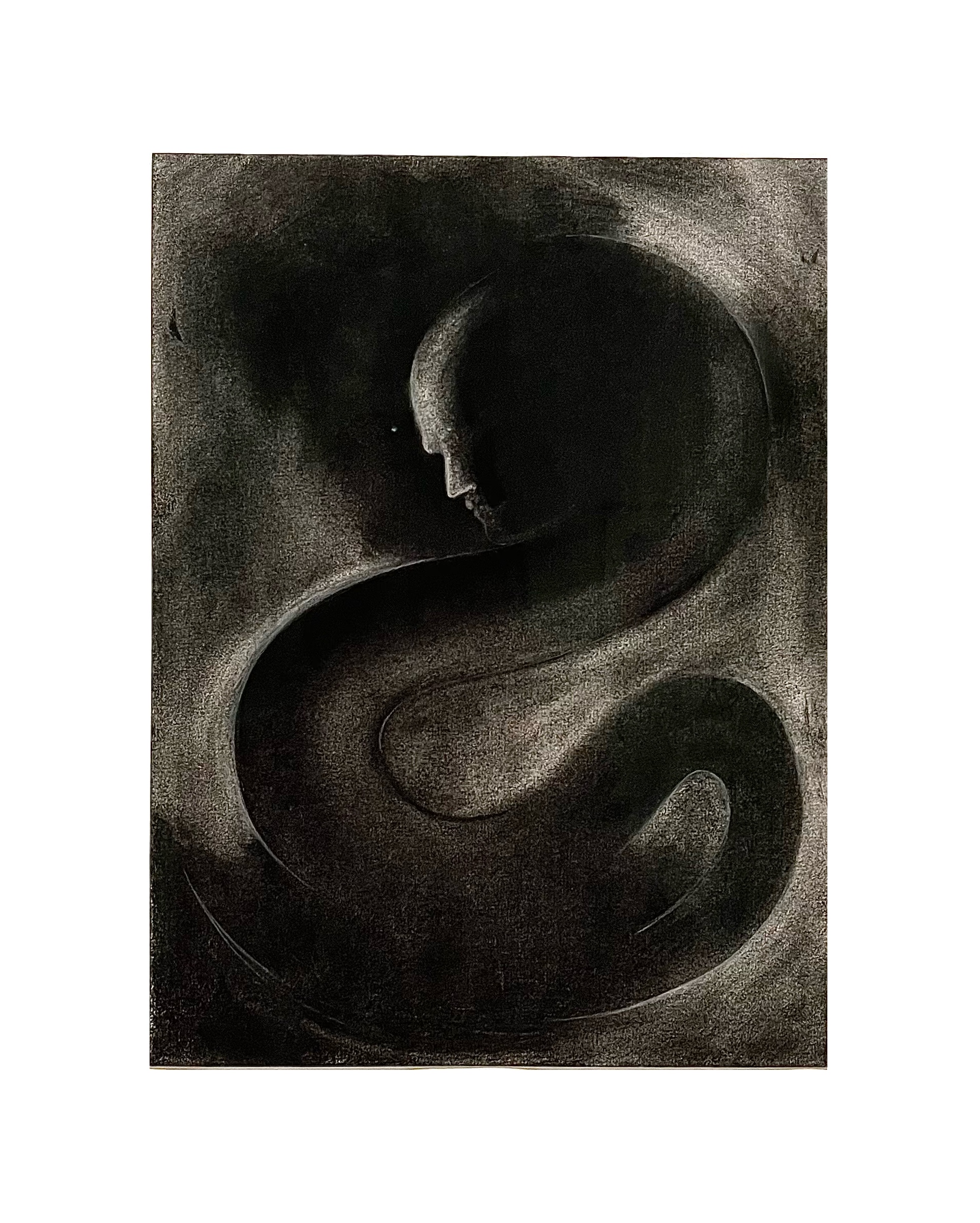 Tomer Rosenthal’s work has extraordinary quality. In small works on paper, he descends to depths of darkness, to the underground of human nature, creating “flowers of evil,” if we may borrow the name of Baudelaire’s Symbolist poems (1857). Rosenthal’s drawings, even the few that are light colored, are dark and worrisome, inviting viewers to merciless introspection