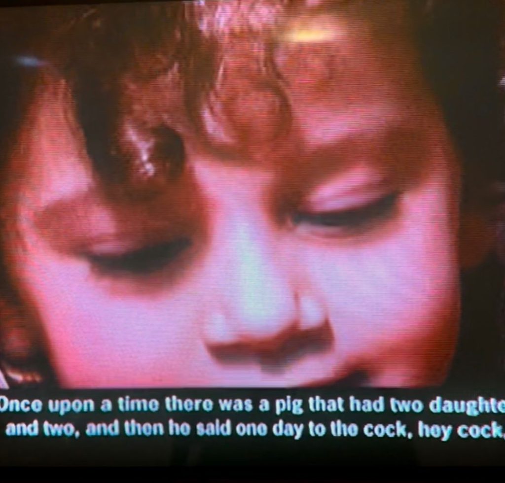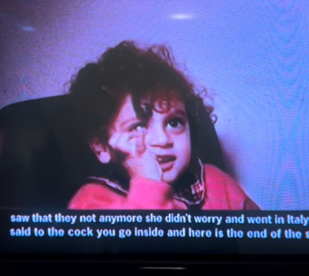 The video Albanian Stories (1997) is Paci’s first video work, made after he emigrated to Italy. The camera follows his young daughter retelling fairy tales that are innocent on the surface yet enfold life traumas she experienced during the civil war in Albania. With the help of a grant from Catholic institutions, Paci, a Christian, was able to move from mainly Muslim Albania to Italy, where he also made the transition from painting to video art.