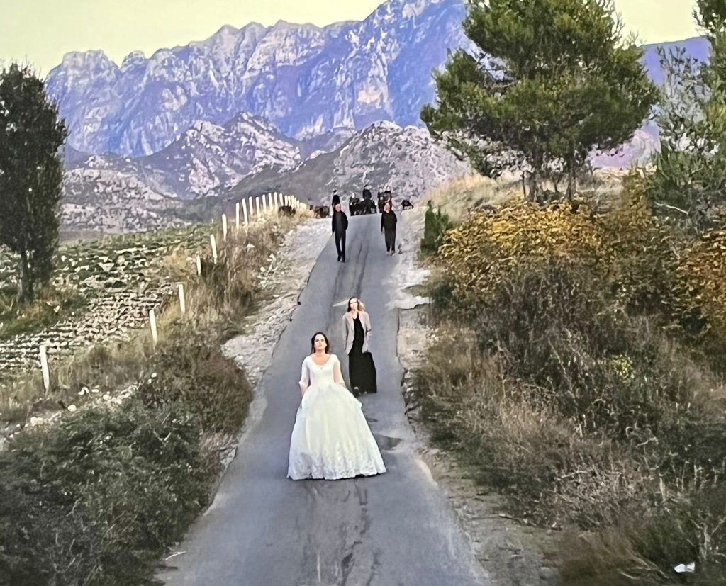 The black and white footage is of a desolate landscape. The color footage shows people and animals in a small group marching down a deserted road, headed by a bride. Here Paci comes very close to a type of universal message of hope, despite the lone bride evoking ambivalence, without which the video might look like an optimistic clip by a social organization.