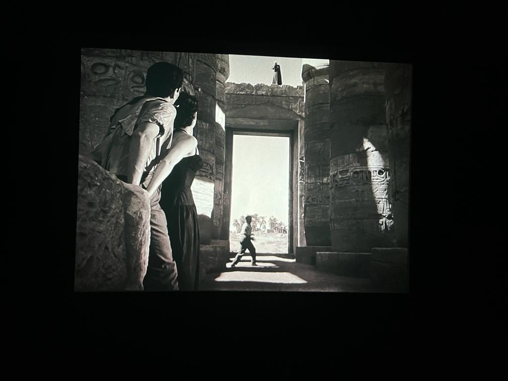 שצולם בלוקסור ב 1954. האתר הארכאולוגי המדהים (המילה הולמת במקרה זה ) יוצר מצב בו זיכרון סרטים עם תפאורה ממוצאת כמו “עשרת הדיברות” של ססיל דה- מיל מ 1923 מתערבל עם מציאות, ובניית מיתוס. השימוש של שאהין בארכאולוגיה הממשית, כמצרי מודרני המבקש ליצור גשר בינו לבין העבר שונה מהותית מפנטזיה מערבית על העבר של מזרח ובכל זאת הדמיון נוכח בעוצמה. המשחק מציאות דמיון התרחש בסרט בו השחקנים עומר שריף, בהופעה קולנועית מוקדמת ופאתן חמאמה, כוכבת מצרית הכירו בסרט, התאהבו והיו לזוג הראשון של הקולנוע המצרי.