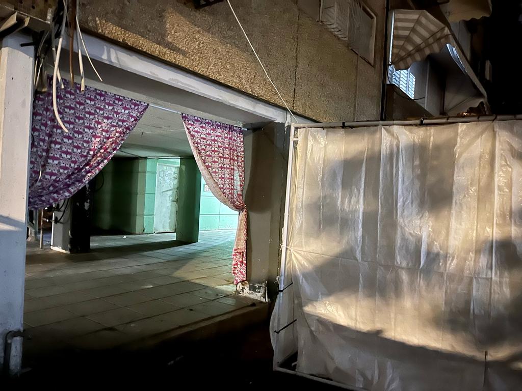 A public art project during the holiday of Succot – Festival of Tabernacles – created an interesting moment of comparison between a genuine community action of erecting the numerous festive booths and an orchestrated “festival.” In the context of Succot and outside/inside activities, one work that stood out favorably is Rachel Anyo’s installation (8 Nardur Street). She photographed windows in the area, printed them on textile which she hung on the ground level under the pillars of a building in a contemplation of interior/exterior and the diffusion between them, resonating the nearby succa in an interesting juxtaposition.